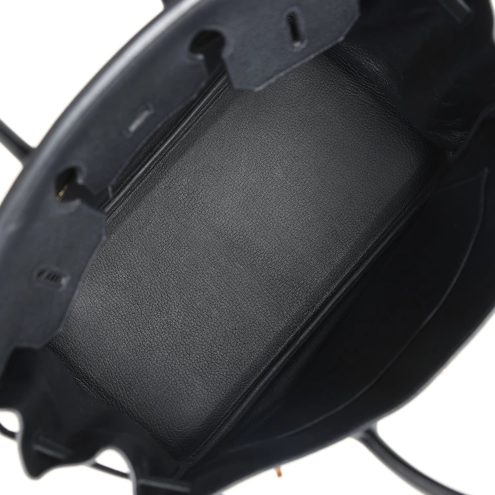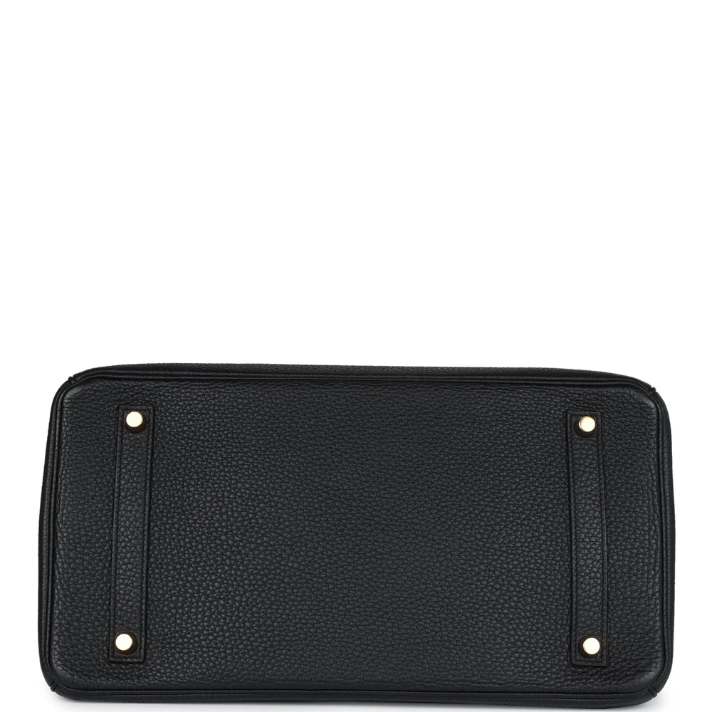 This Hermès Birkin 35 is designed in black Togo leather with rose gold hardware, featuring tonal stitching, a front flap with two straps and a center toggle closure, a clochette with lock and one key, and double rolled handles. The interior is lined with black chèvre leather and includes one zip pocket with an Hermès engraved zipper pull and an open pocket on the opposite side. The rose gold hardware adds a warm and elegant touch to this Birkin. The black Togo leather provides a timeless appeal. This bag is in excellent condition and offers both luxury and practicality.