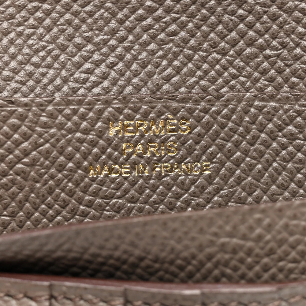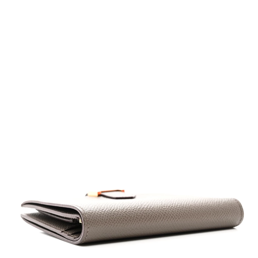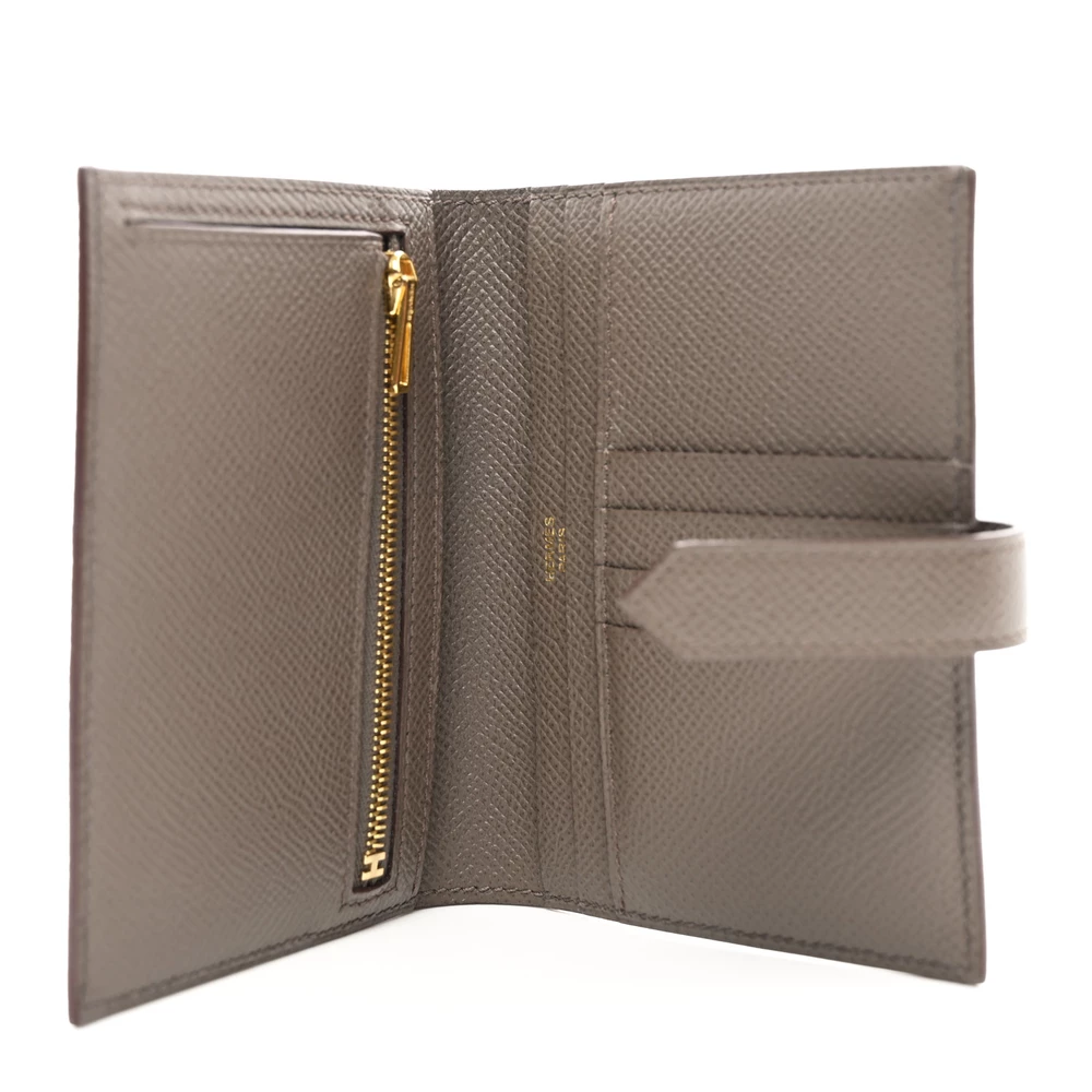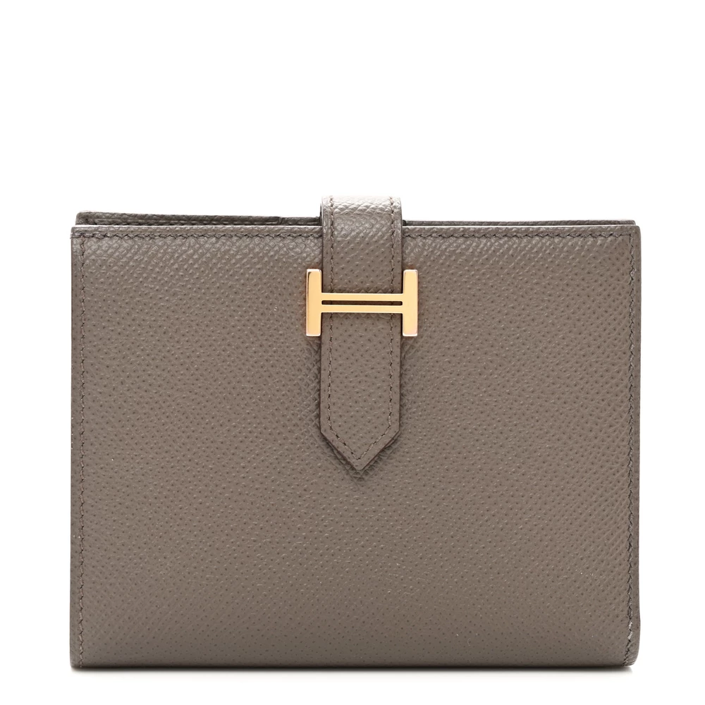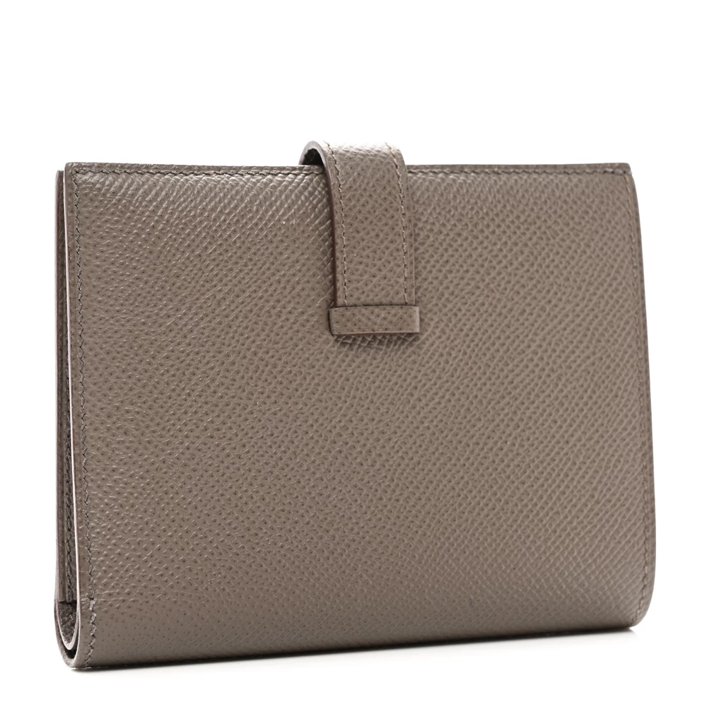 This Hermès Epsom Bearn Compact Wallet in Etain is a sleek and elegant essential. The cool grey Etain shade enhances the structured Epsom leather, offering both sophistication and durability. Featuring the signature H clasp, it blends timeless design with everyday practicality. A refined wallet for those who appreciate classic luxury.