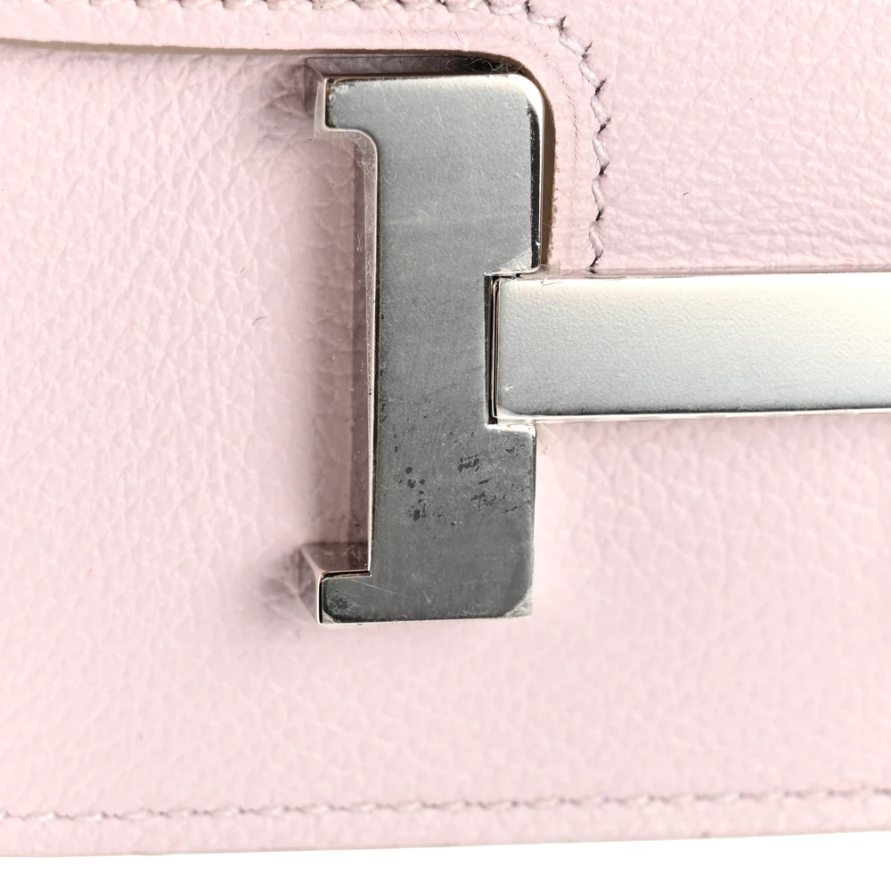 This Hermès Evercolor Bi-Color Constance Slim Wallet in Beige and Rouge Sellier is a chic and compact essential that combines elegance with functionality. Crafted from luxurious Evercolor calfskin leather, this wallet features a delicate light pink Beige hue paired with a bold Rouge Sellier accent, creating a beautiful contrast. The frontal palladium-plated H clasp adds a signature touch of sophistication, while the interior boasts a matching leather lining with card slots for organization. Additionally, a pink removable zipper pocket insert provides extra convenience. This stylish wallet is perfect for those who appreciate timeless design and practical luxury in one sleek piece.
