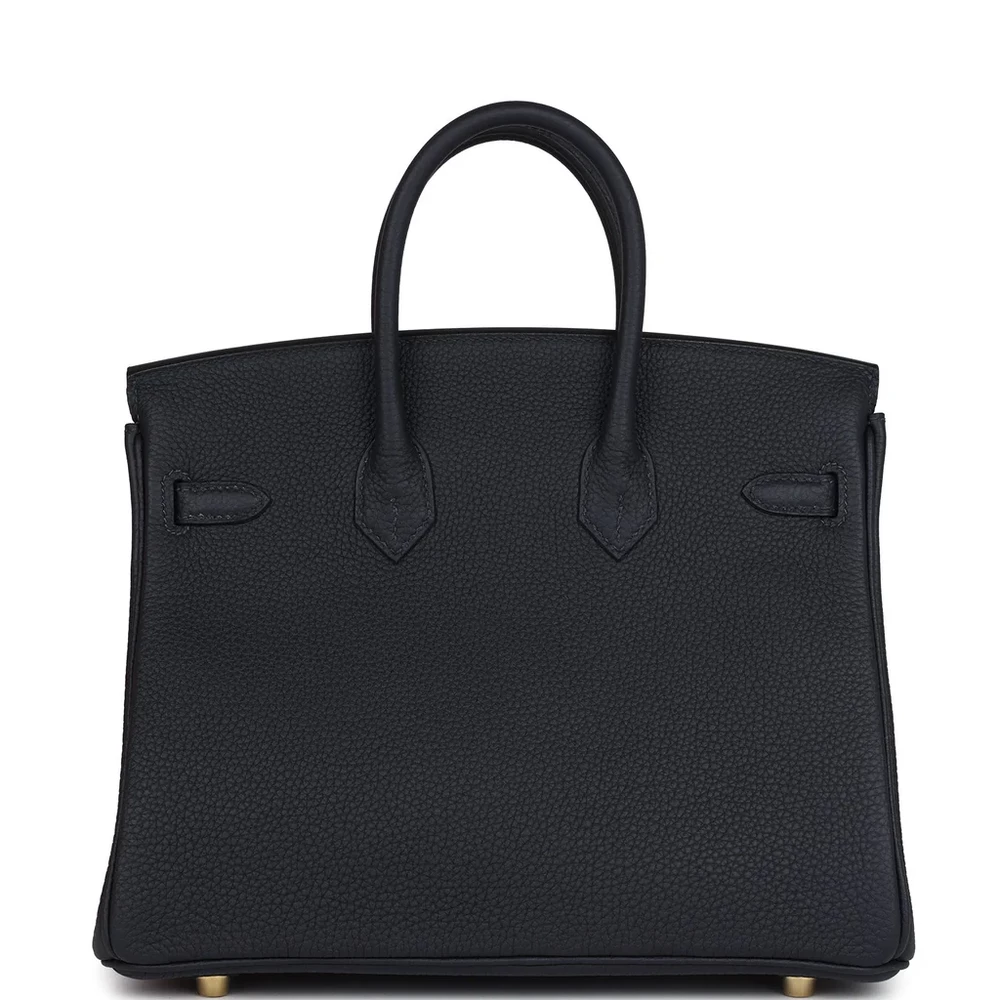 This Hermès Birkin is crafted from Caban Togo leather with gold hardware, featuring tonal stitching, a front flap with two straps and a center toggle closure, a clochette with lock and two keys, and double rolled handles. The interior is lined with Caban chèvre leather and includes one zip pocket with an Hermès-engraved zipper pull and an open pocket on the opposite side.