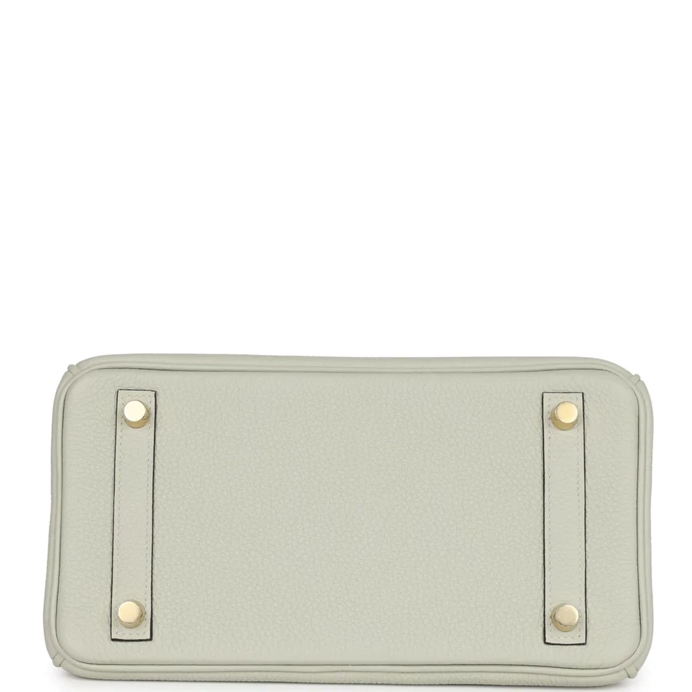This Hermès Birkin is crafted from Gris Neve Togo leather with gold hardware, featuring tonal stitching, a front flap with two straps and a center toggle closure, a clochette with lock and two keys, and double rolled handles. The interior is lined with Gris Neve chèvre leather and includes one zip pocket with an Hermès-engraved zipper pull and an open pocket on the opposite side.