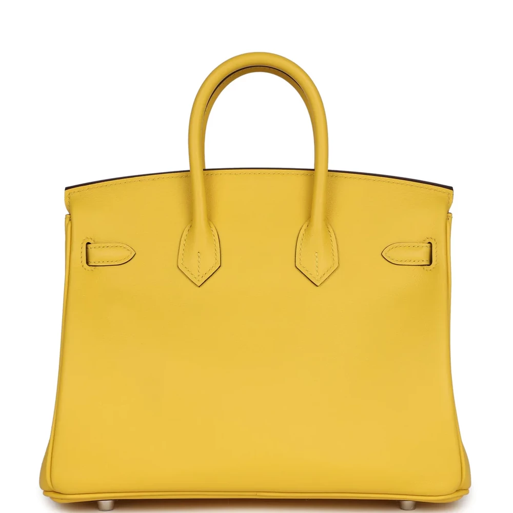 This Hermès Birkin is crafted from Jaune de Naples Swift leather with palladium hardware, offering a luxurious and vibrant design. The bag features tonal stitching and a front flap with two straps and a center toggle closure for secure fastening. A clochette with a lock and two keys adds an extra layer of sophistication. Double rolled handles provide comfort while carrying. Inside, the bag is lined with Jaune de Naples Chevre leather, providing a soft, elegant touch. It includes a zip pocket with an Hermès engraved zipper pull and an open pocket on the opposite side for practical storage.