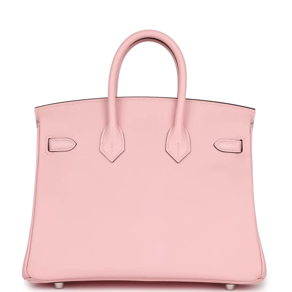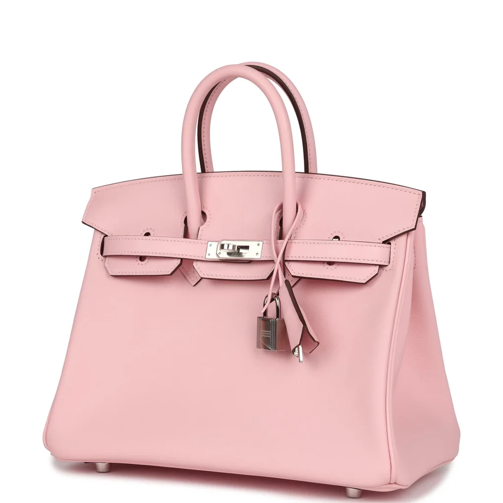 This Hermès Birkin is made from Rose Sakura Swift leather with palladium hardware, offering a delicate and refined look. The bag features tonal stitching, a front flap with two straps, and a center toggle closure for secure fastening. A clochette with a lock and two keys enhances the bag’s security, while the double rolled handles provide comfort. The interior is lined with Rose Sakura Swift leather, offering a luxurious feel. It includes one zip pocket with an Hermès engraved zipper pull, and an open pocket on the opposite side for practical organization.
