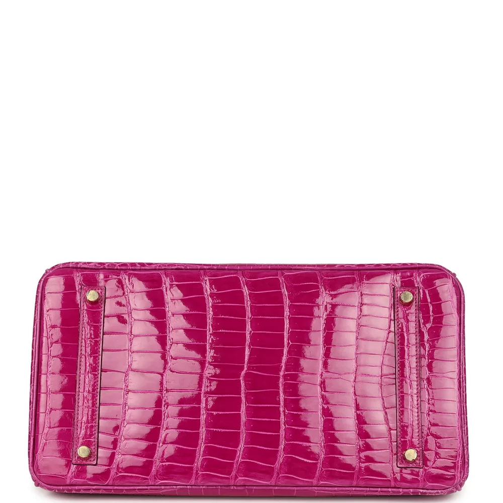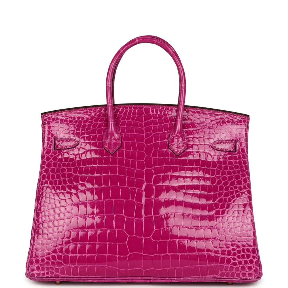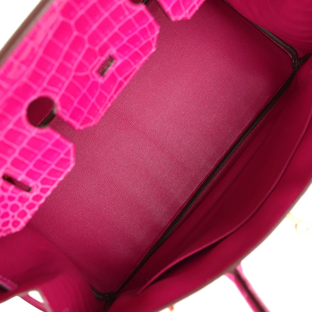 This Hermès Birkin is crafted from Rose Sheherazade Shiny Porosus Crocodile leather with palladium hardware, showcasing a striking and exotic design. The bag features tonal stitching, a front strap, two straps with a center toggle closure, and a clochette with a lock and two keys for added security. The double rolled handles ensure comfort while carrying. The interior is lined with Rose Sheherazade Chevre leather, offering a luxurious touch. It includes one zip pocket with an Hermès engraved zipper pull and an open pocket on the opposite side for convenient storage.