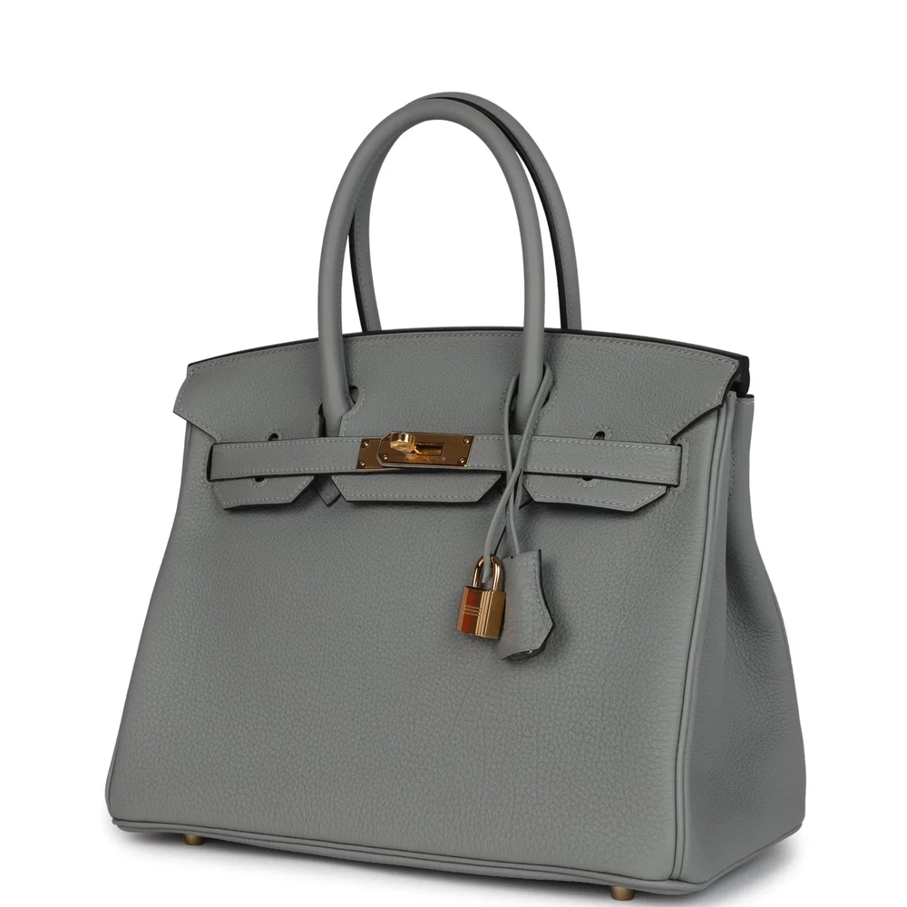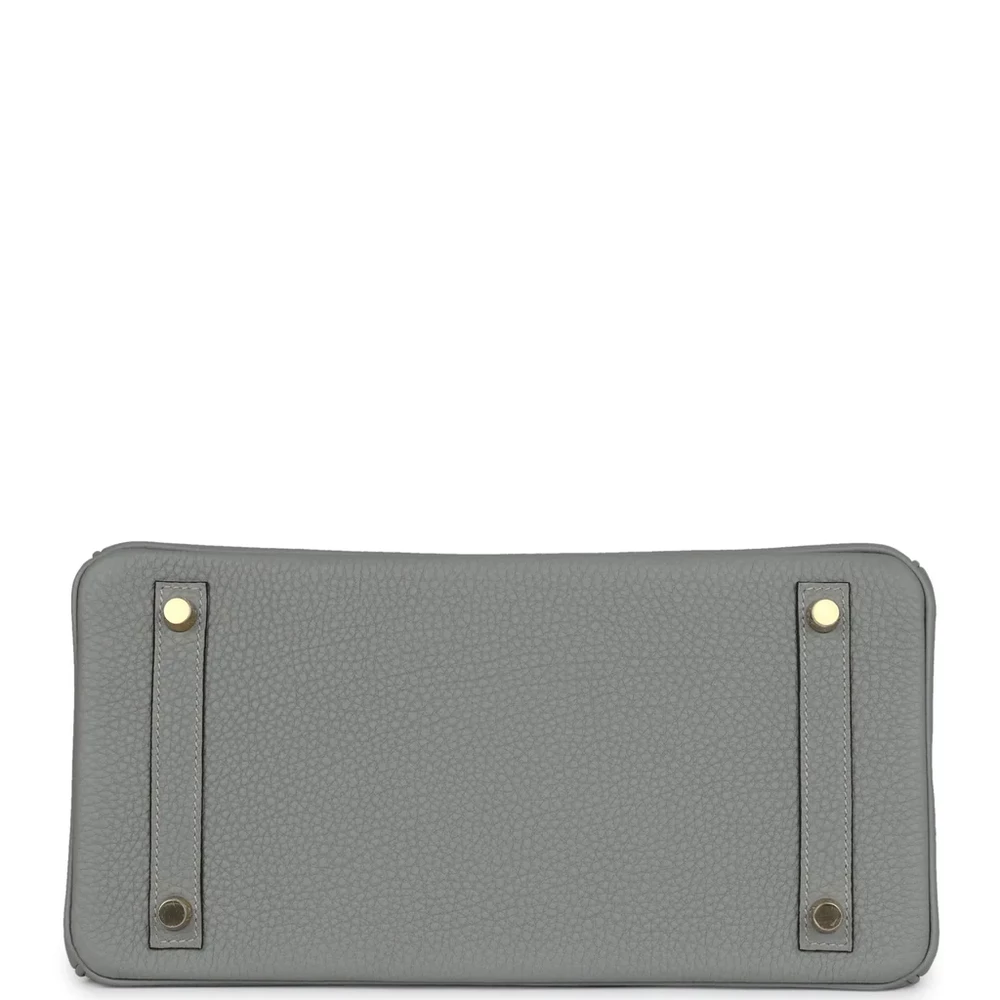This Hermès Birkin 30 is constructed from Gris Mouette Togo leather with gold hardware, featuring tonal stitching, a front flap, two straps with a center toggle closure, a clochette with lock and two keys, and double rolled handles. The interior is lined with Gris Mouette chèvre leather and includes one zip pocket with an Hermès engraved zipper pull and an open pocket on the opposite side. The Togo leather is soft and supple, making it a durable and luxurious choice for everyday wear. The gold hardware adds warmth and elegance to the bag. The spacious interior provides ample room for your essentials. This bag is the perfect combination of style and functionality.