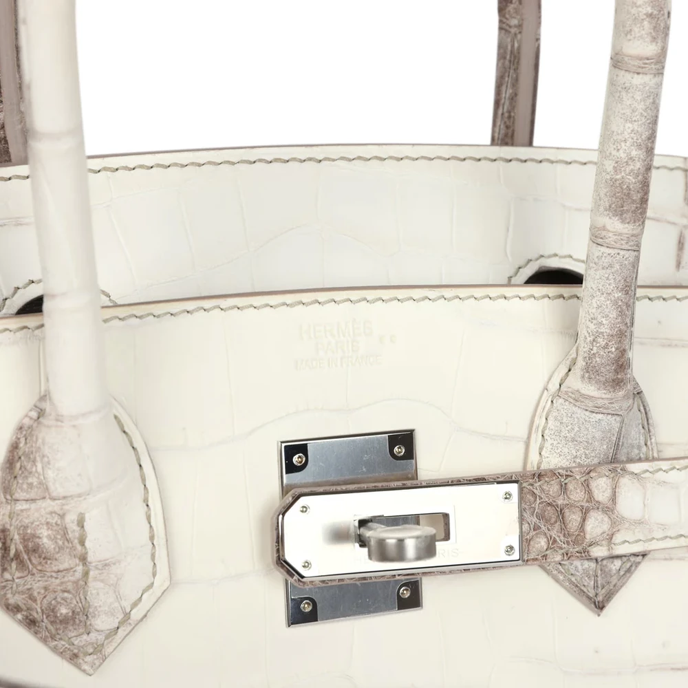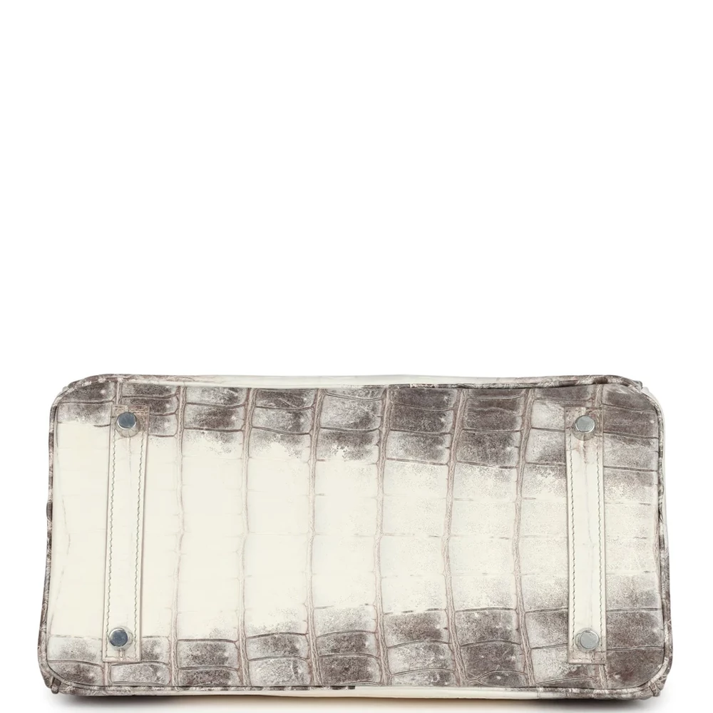 This Hermès Himalaya Birkin is made from Niloticus crocodile leather with palladium hardware. The bag features contrast stitching and a front flap, secured by two straps with a center toggle closure. A clochette with a lock and two keys is included, along with double rolled handles for comfort. Inside, the bag is lined with Gris Tourterelle Chevre leather for a soft, refined feel. It includes one zip pocket with an Hermès engraved zipper pull, as well as an open pocket on the opposite side for easy access to your essentials. This piece is the epitome of luxury and sophistication.