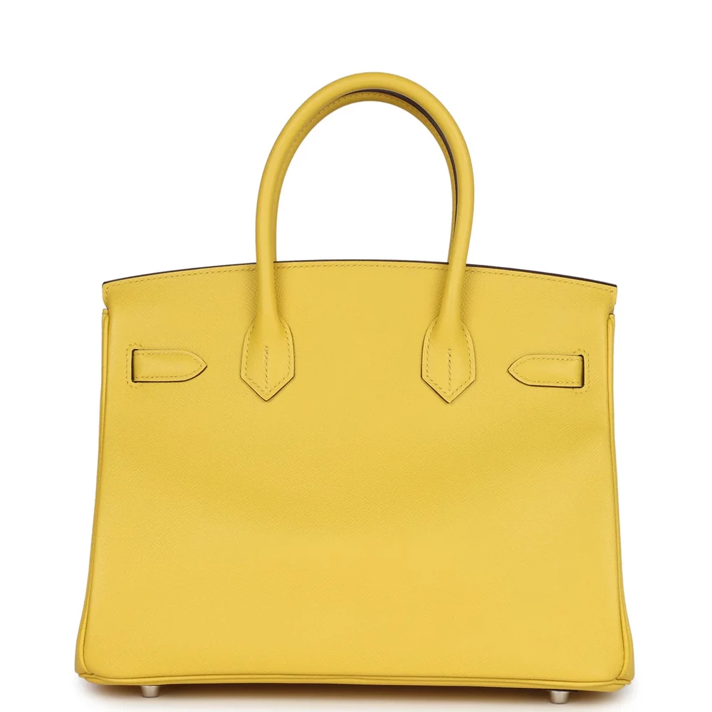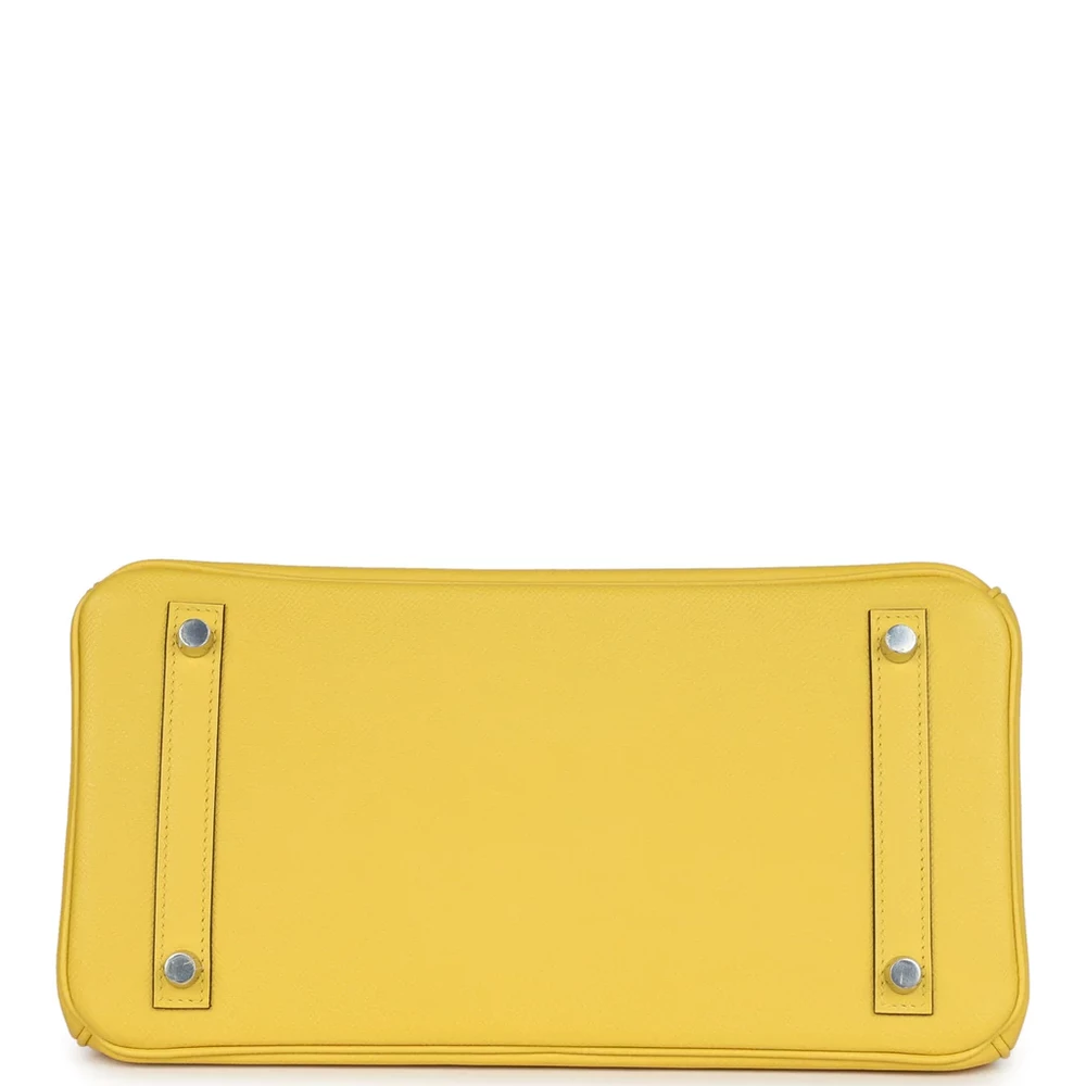 This Hermès Birkin is made from Jaune de Naples Epsom leather with palladium hardware, offering a sleek and sophisticated look. The bag features tonal stitching, a front flap, and two straps with a center toggle closure for added security. The clochette with a lock and two keys ensures your belongings are safe, while the double rolled handles provide comfort during carrying. The interior is lined with Jaune de Naples Chevre leather, providing a smooth, luxurious touch. One zip pocket with an Hermès engraved zipper pull and an open pocket on the opposite side offer ample storage space.