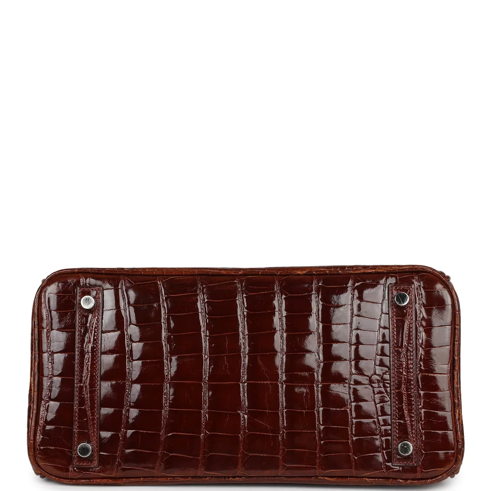 This Hermès Birkin is constructed from Miel shiny Niloticus crocodile leather with palladium hardware, featuring tonal stitching, a front flap with two straps, a front toggle closure, a clochette with lock and two keys, and double rolled handles. The interior is lined with Miel chèvre leather and includes one zip pocket with an Hermès-engraved zipper pull and an open pocket on the opposite side. This Birkin is perfect for those seeking a luxury accessory with a unique texture. The crocodile leather is known for its elegance and durability. The sleek palladium hardware complements the subtle sophistication of the Miel color. The interior is thoughtfully designed with functional pockets to organize your essentials.