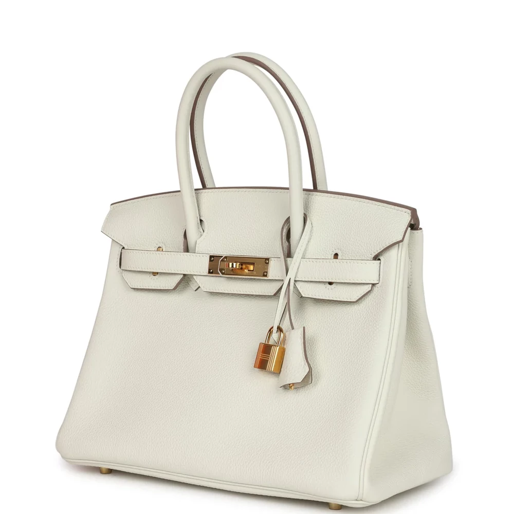 This Hermès Birkin is crafted from Mushroom Togo leather with gold hardware, offering a luxurious design. It features tonal stitching and a front flap with two straps and a center toggle closure for security. The clochette with a lock and two keys enhances its elegance, while the double rolled handles provide comfort. Inside, the bag is lined with Mushroom Chevre leather, ensuring a smooth and stylish finish. The interior has one zip pocket with an Hermès engraved zipper pull, and an open pocket on the opposite side for easy storage.