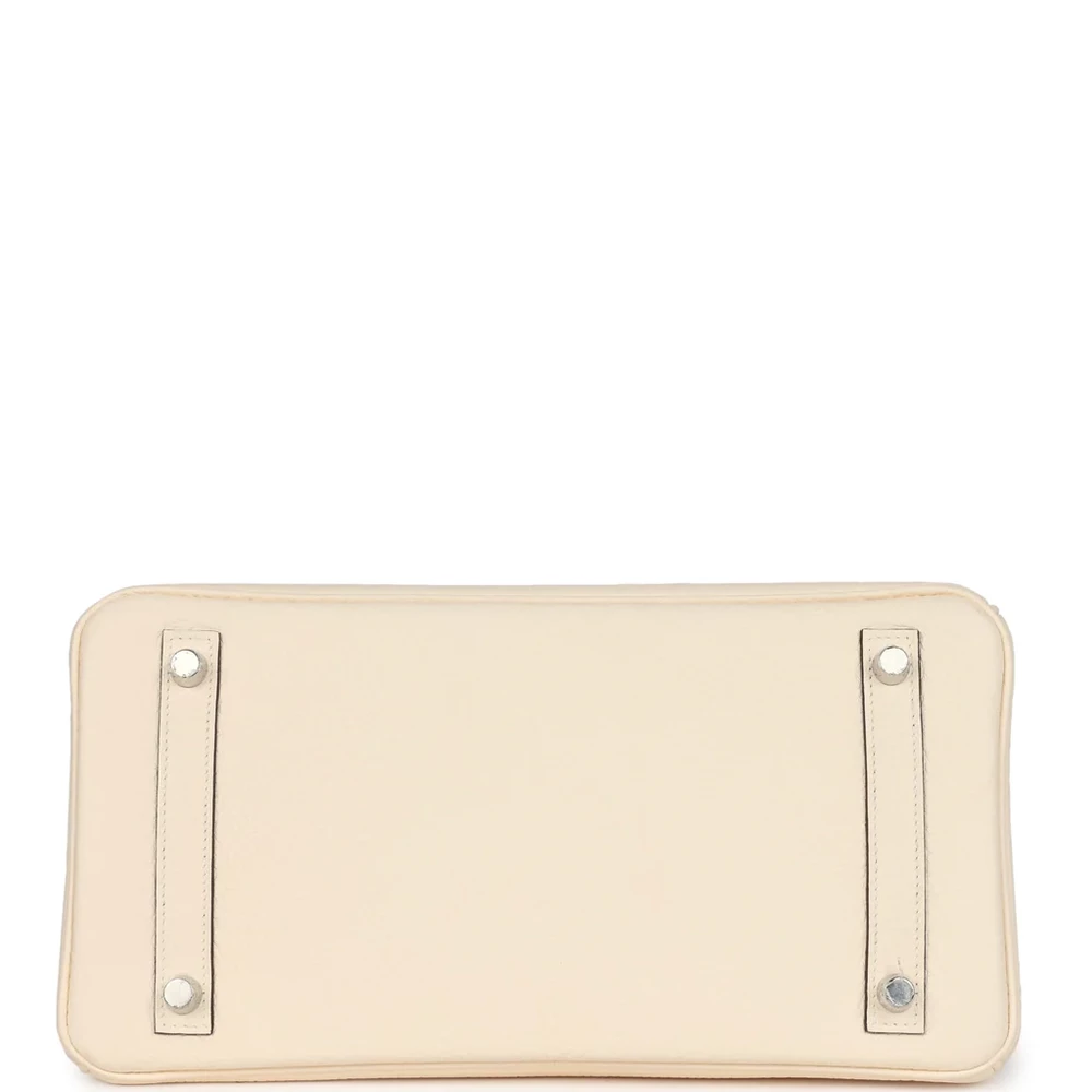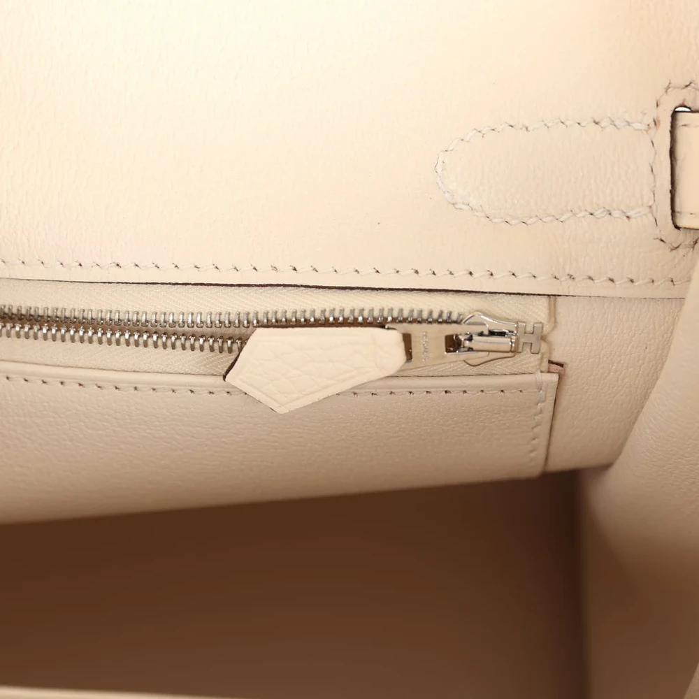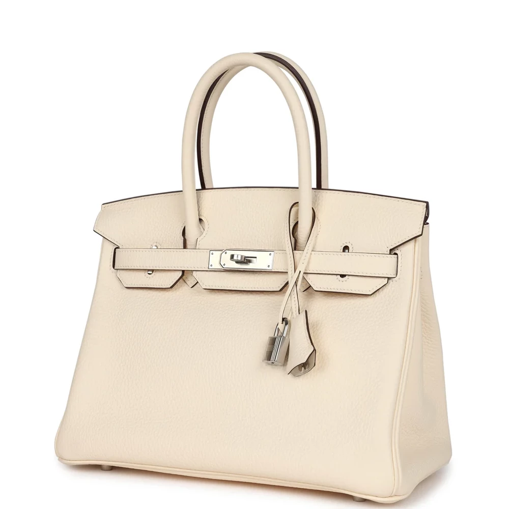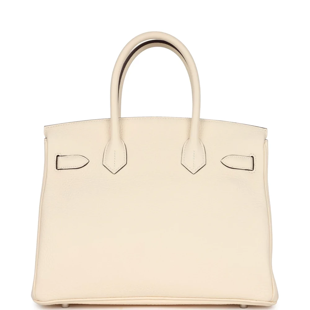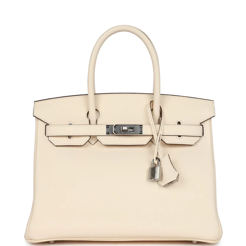 This Hermès Birkin is made from Nata Clemence leather with palladium hardware, offering a refined, timeless look. The bag features tonal stitching and a front flap with two straps secured by a center toggle closure for added security. A clochette with a lock and two keys enhances the bag’s elegance, while double rolled handles ensure comfort. Inside, the bag is lined with Nata Chevre leather, providing a luxurious finish. It includes one zip pocket with an Hermès engraved zipper pull and an open pocket on the opposite side for convenient storage.