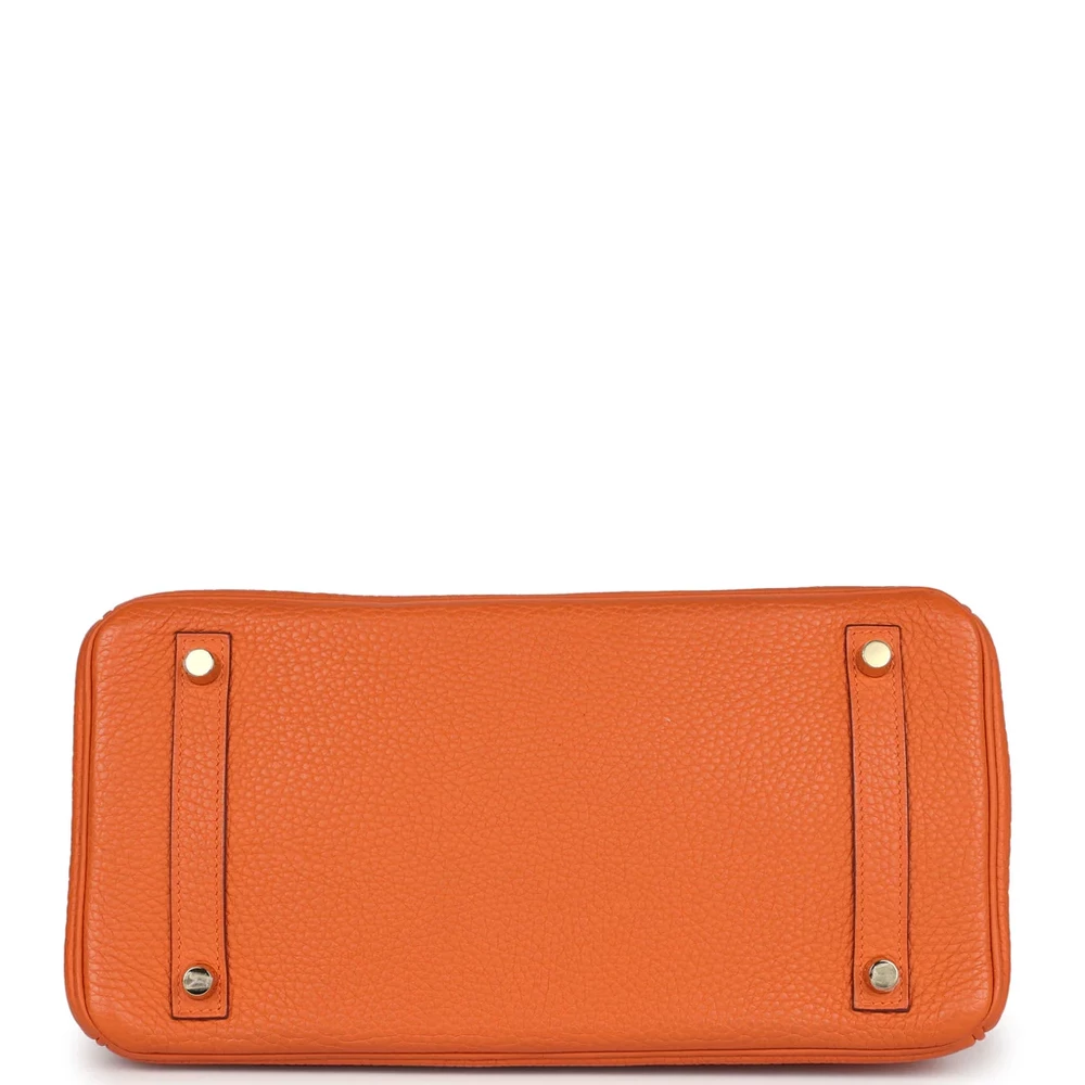 This Hermès Birkin is crafted from Orange Togo leather with gold hardware, providing a vibrant and timeless design. The bag features tonal stitching and a front flap with two straps, secured by a center toggle closure for secure fastening. A clochette with a lock and two keys enhances the bag’s security, while the double rolled handles ensure comfort while carrying. Inside, the bag is lined with Orange Chevre leather for a soft and luxurious touch. It includes one zip pocket with an Hermès engraved zipper pull, and an open pocket on the opposite side for easy access.