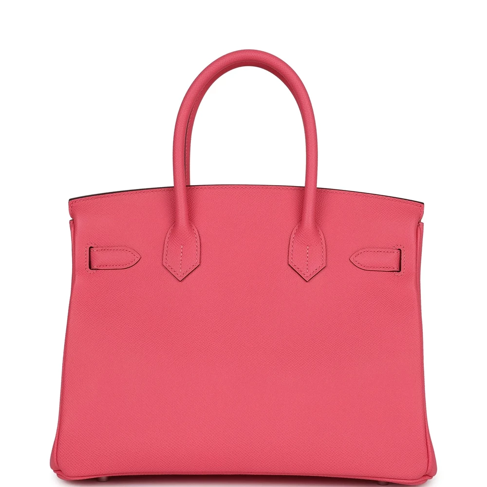 This Hermès Birkin 30 in Rose Azalee Epsom leather is a vibrant and feminine accessory, enhanced by palladium hardware. Its bold pink hue adds a pop of color, while its structured design ensures practicality. Perfect for the modern individual, it effortlessly combines style and functionality. A celebration of Hermès’ artistry, it is a timeless piece for any collection.