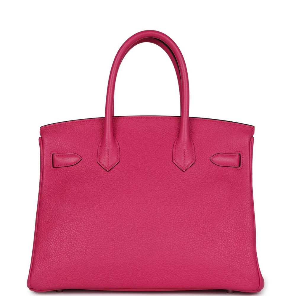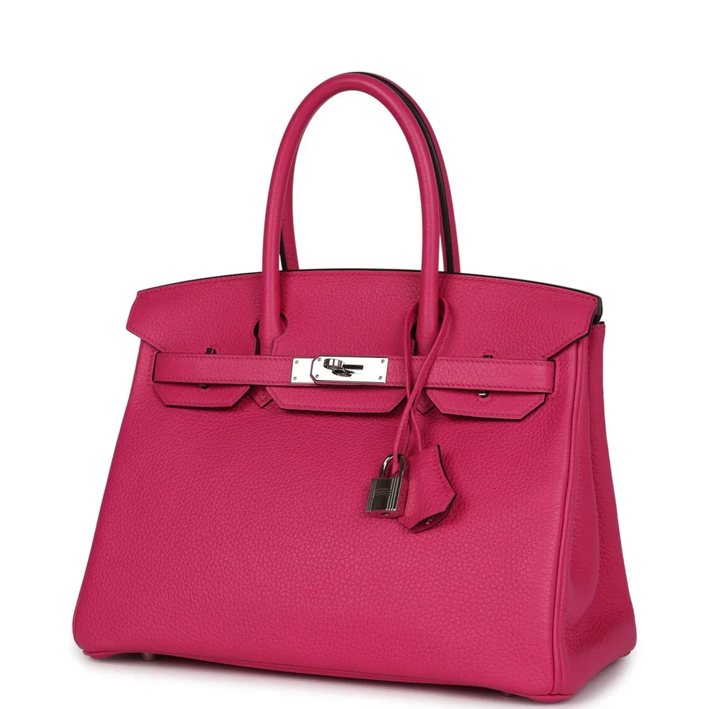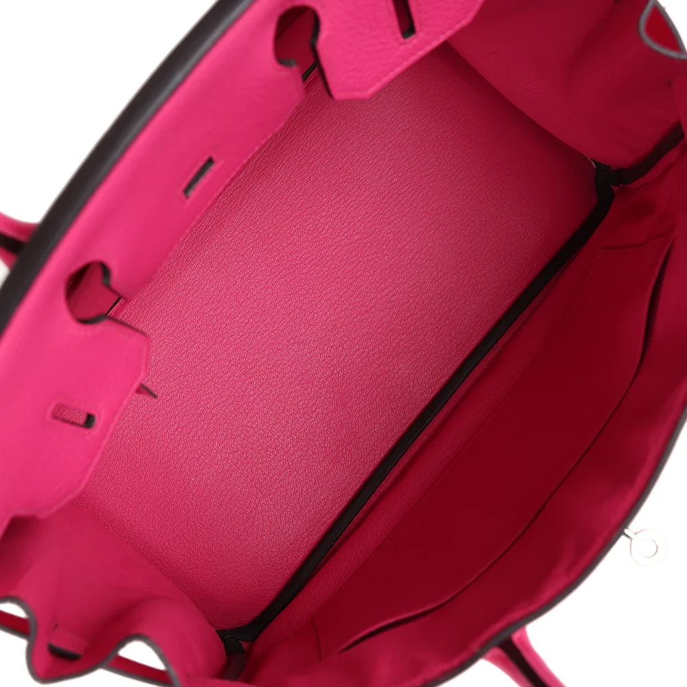 This Hermès Birkin is crafted from Rose Shocking Clemence leather with palladium hardware, offering a vibrant and luxurious design. The bag features tonal stitching, a front flap with two straps, and a front toggle closure for secure fastening. A clochette with a lock and two keys enhances the bag’s security, while the double rolled handles provide comfort. The interior is lined with Rose Shocking Chevre leather, providing a smooth and refined finish. It includes one zip pocket with an Hermès engraved zipper pull and an open pocket on the opposite side for easy organization.