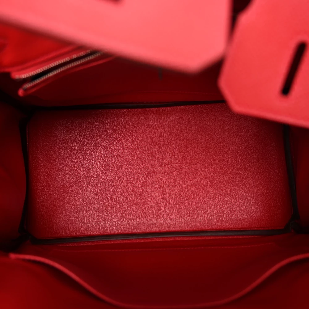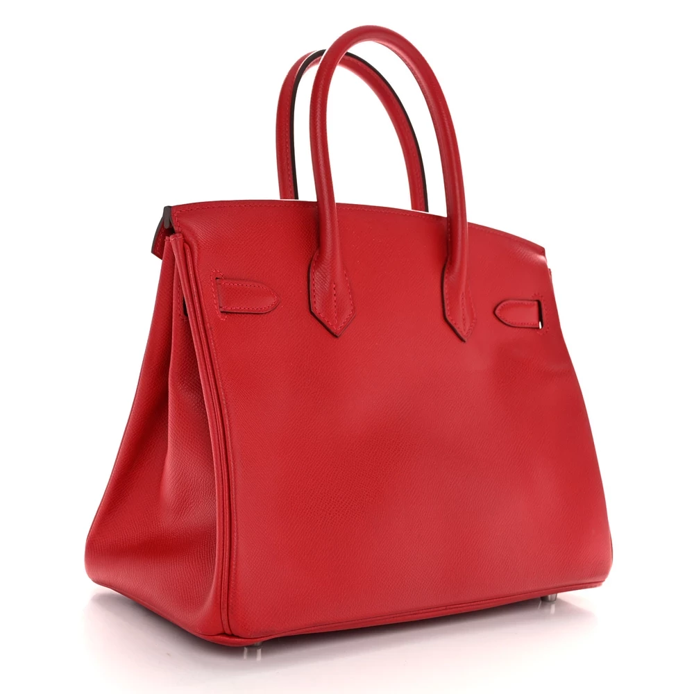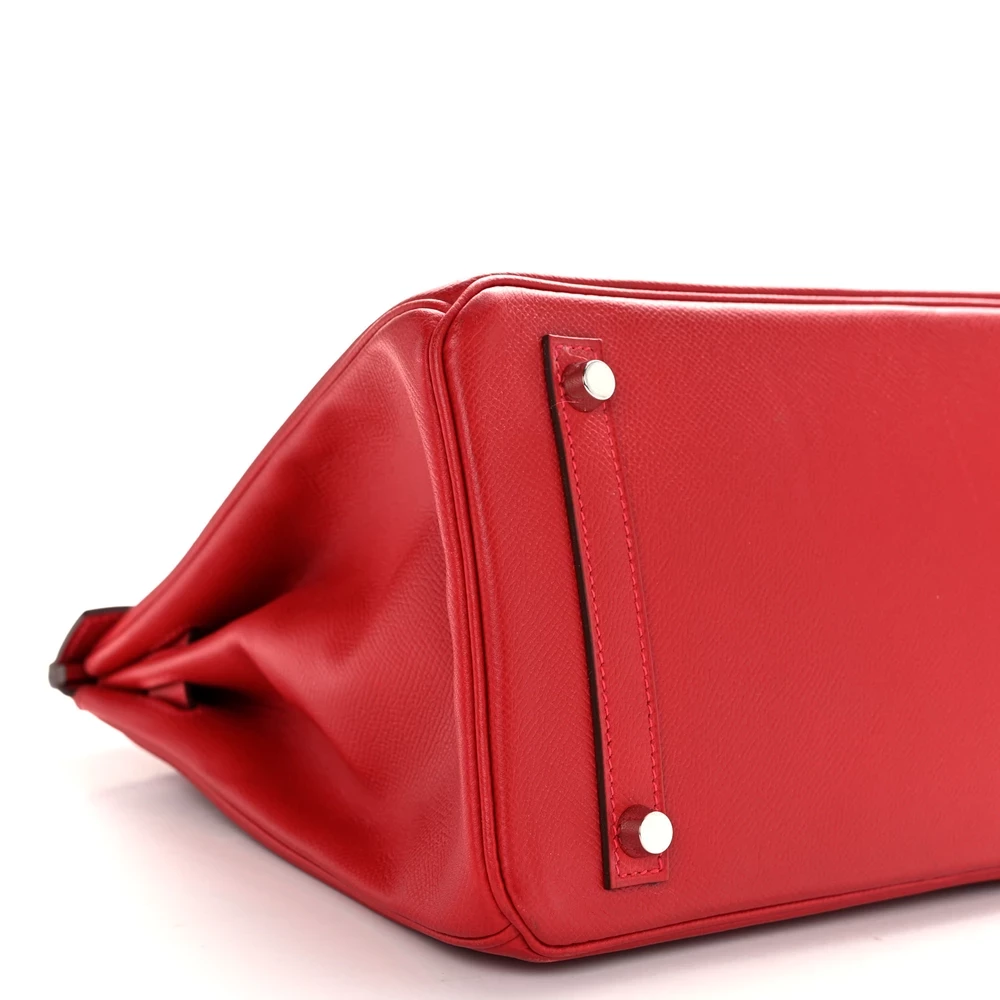 This Hermès Epsom Birkin 30 in Rouge Casaque is a bold and striking handbag in a deep red shade. The Epsom leather offers a structured and lightweight feel, making it both practical and elegant. The 30 cm size ensures versatility for both day and evening wear. Palladium hardware enhances the rich color with a modern touch. This bag is a statement piece that embodies passion and confidence.