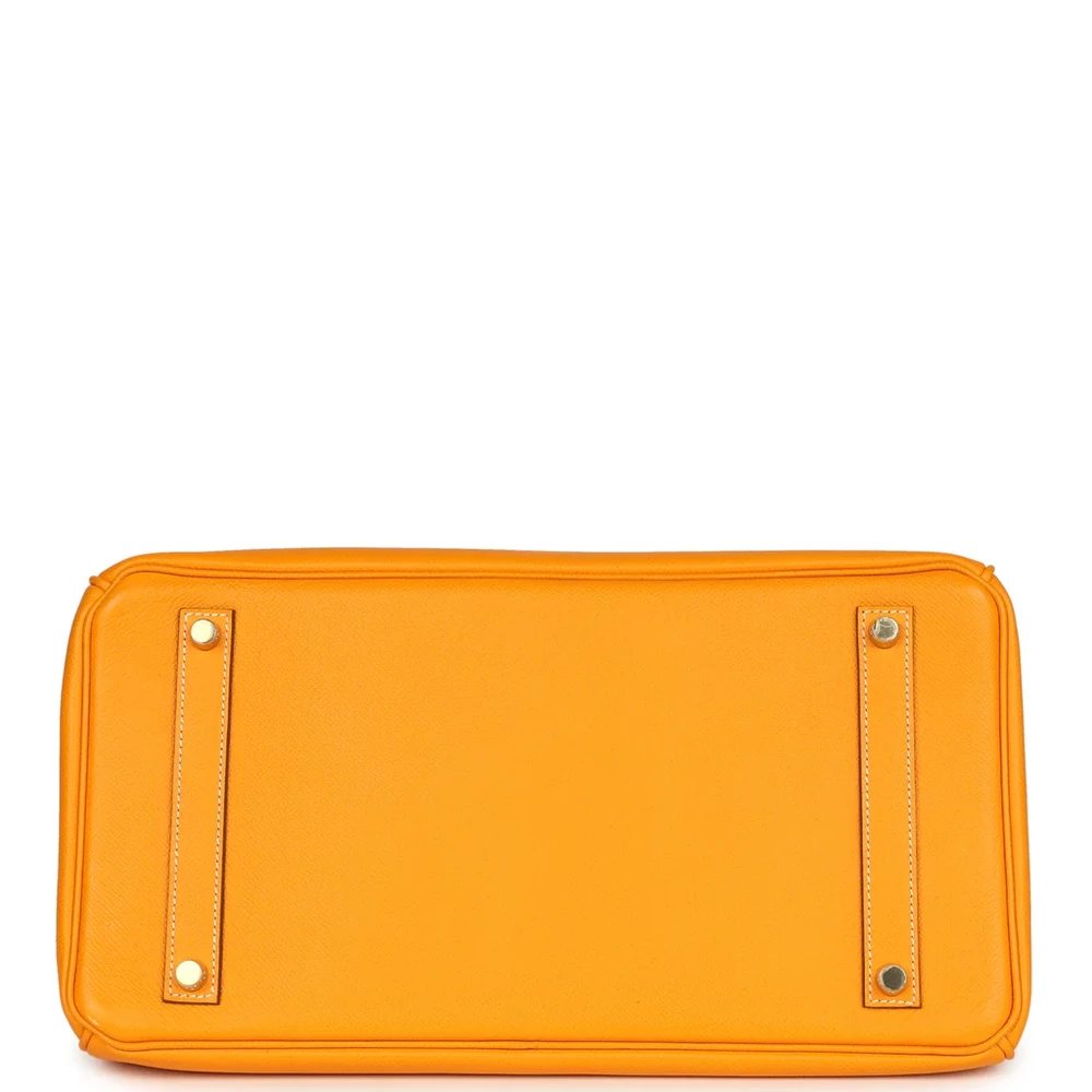 This Candy Hermès Birkin is crafted from Jaune d’Or Epsom leather with permabrass hardware, offering a bold and vibrant design. The bag features contrast stitching, a front toggle closure, and a clochette with a lock and two keys for added elegance. The double rolled handles ensure comfortable carrying, while the interior is lined with Potiron Chevre leather for a unique, luxurious finish. It includes one zip pocket with an Hermès engraved zipper pull and an open pocket on the opposite side for convenient storage.