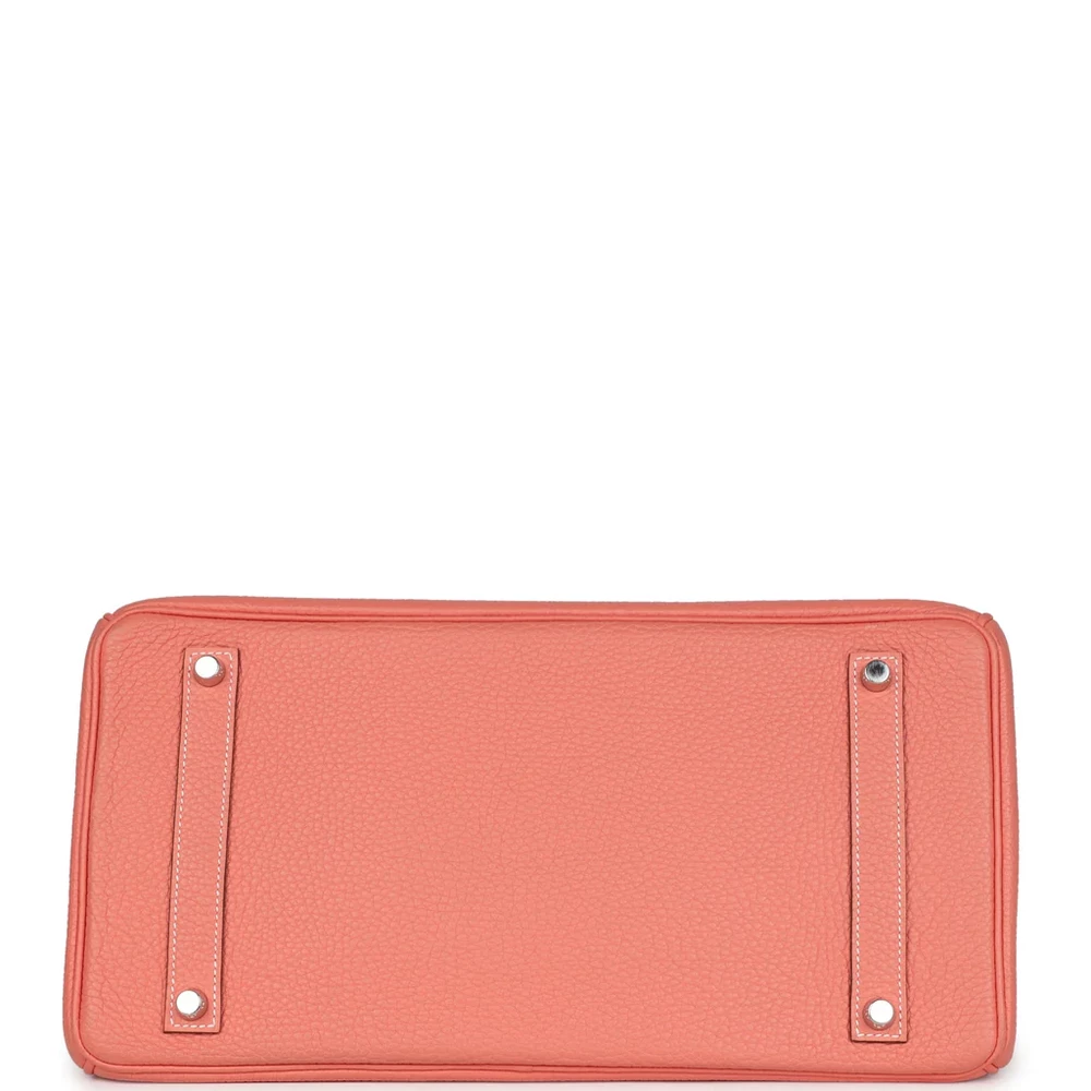This Hermès Birkin is crafted from Crevette Clemence leather with palladium hardware, offering a soft and sophisticated design. The bag features contrast stitching, a front flap with two straps, and a center toggle closure for secure fastening. A clochette with a lock and two keys enhances the bag’s elegance, while the double rolled handles provide comfort. Inside, the bag is lined with Crevette Chevre leather, providing a smooth and luxurious touch. It includes one zip pocket with an Hermès engraved zipper pull and an open pocket on the opposite side for practical organization.