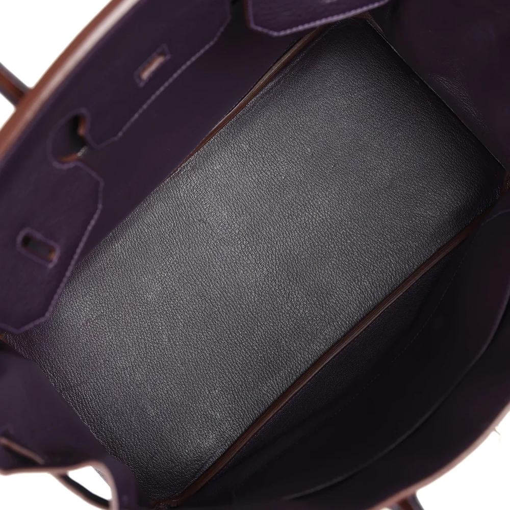 This Hermès Birkin is made from Raisin Clemence leather with palladium hardware, offering a rich and elegant design. The bag features tonal stitching, a front flap with two straps, and a center toggle closure for secure fastening. A clochette with a lock and two keys adds extra sophistication, while the double rolled handles provide comfort. The interior is lined with Chocolate Chevre leather, offering a smooth, luxurious finish. It includes one zip pocket with an Hermès engraved zipper pull and an open pocket on the opposite side for easy access.