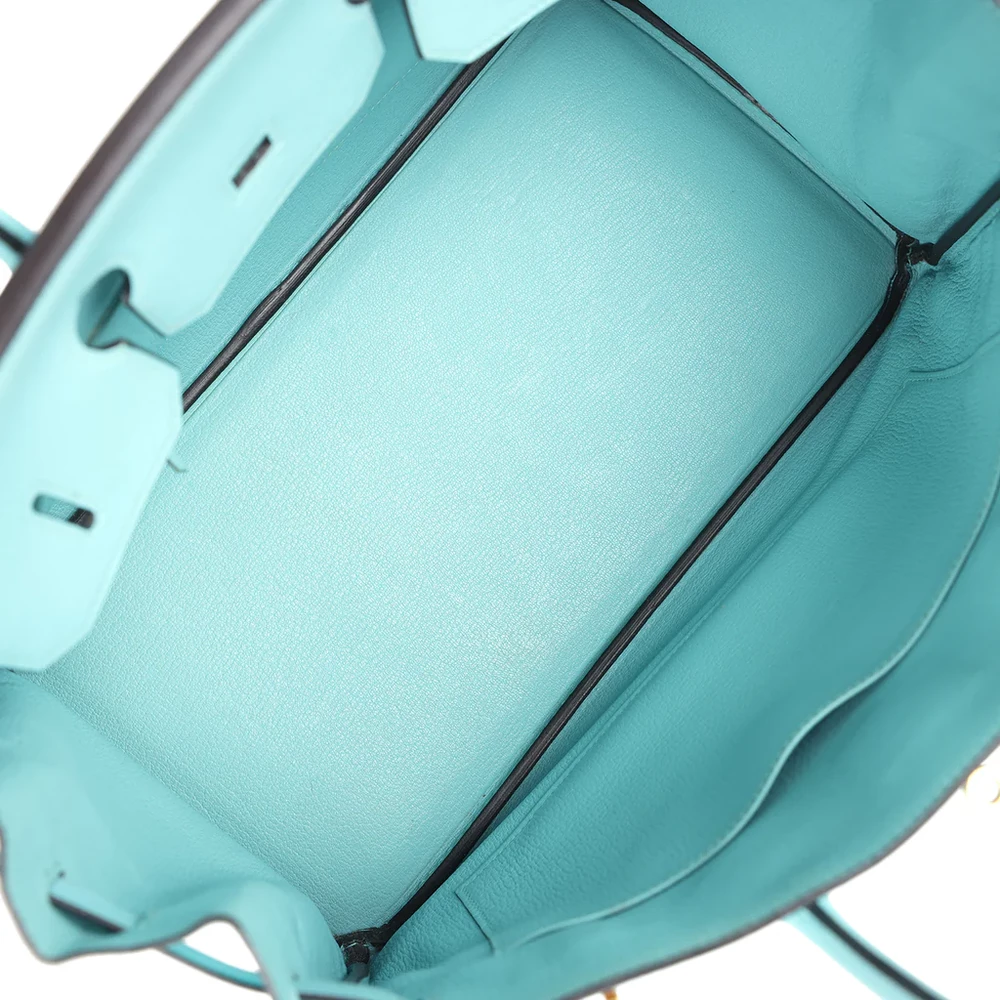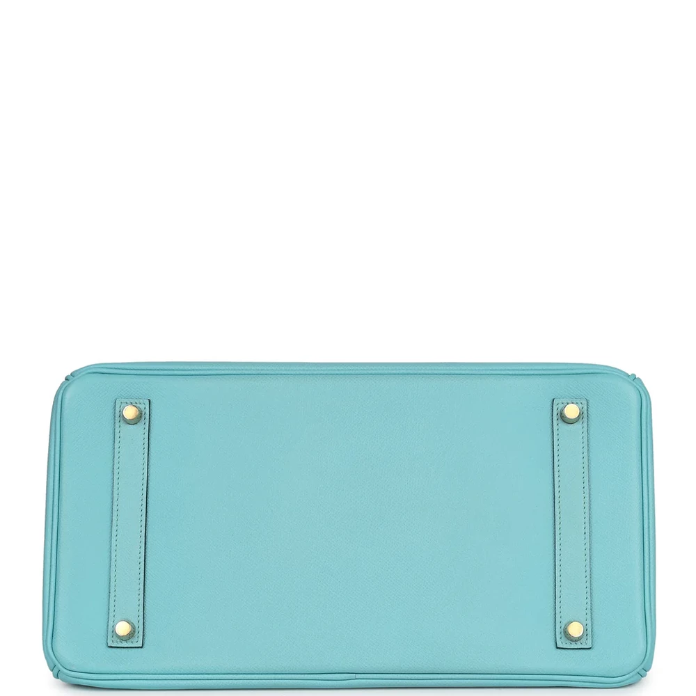 This Hermès Birkin is crafted from Bleu Atoll Epsom leather with gold hardware, offering a refined and sophisticated look. The bag features tonal stitching, two straps with a front toggle closure, and double rolled handles for comfort. A clochette with a lock and two keys ensures your belongings are safe. The interior is lined with Bleu Atoll Chevre leather, offering a smooth, luxurious finish. It includes one zip pocket with an Hermès engraved zipper pull and an open pocket on the opposite side for easy access. This Birkin combines timeless elegance with impeccable craftsmanship.