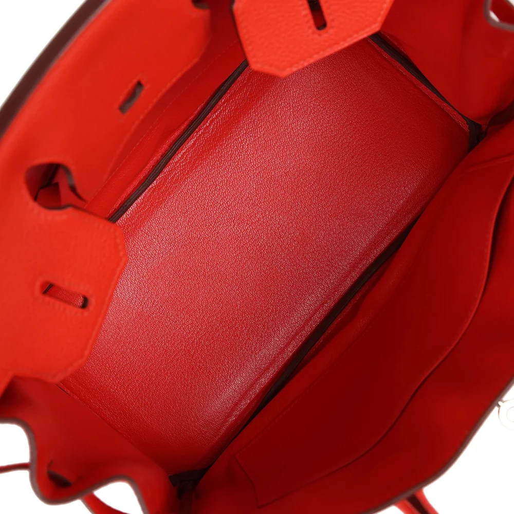 This Hermès Birkin is crafted from Capucine Togo leather with palladium hardware, offering a sophisticated and timeless design. The bag features tonal stitching, a front flap with two straps, and a center toggle closure for secure fastening. A clochette with a lock and two keys adds extra elegance, while the double rolled handles ensure comfortable carrying. Inside, the bag is lined with Capucine Chevre leather, providing a smooth, luxurious finish. The interior includes one zip pocket with an Hermès engraved zipper pull, and an open pocket on the opposite side for easy access to your essentials.