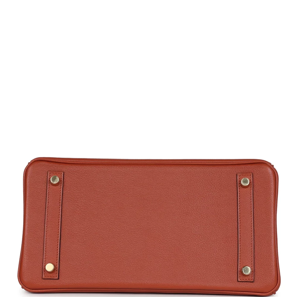 This Hermès Birkin is crafted from Cuivre Taurillon Novillo leather with gold hardware, offering a rich and sophisticated design. The bag features tonal stitching, a front flap with two straps, and a center toggle closure for secure fastening. A clochette with a lock and two keys adds extra elegance, while the double rolled handles ensure comfort. The interior is lined with Cuivre Chevre leather, providing a soft, luxurious finish. It includes one zip pocket with an Hermès engraved zipper pull, and an open pocket on the opposite side for easy organization.