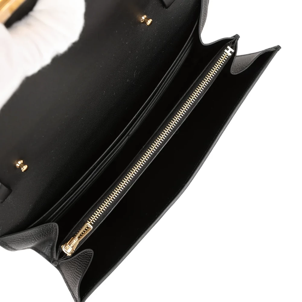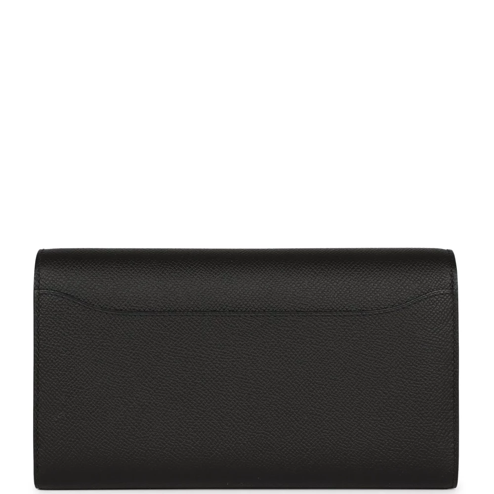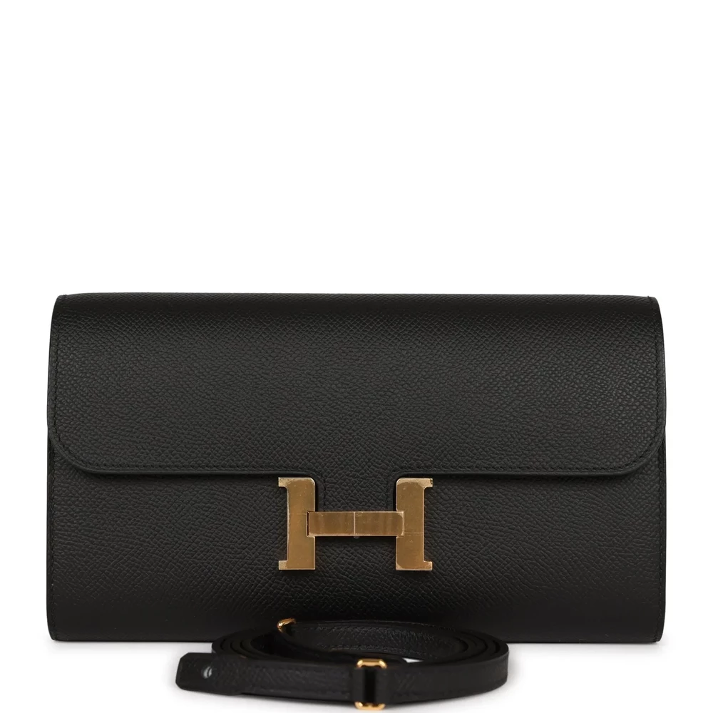 This Hermès Constance Wallet To Go in Black Epsom leather is a refined and versatile accessory. The structured Epsom leather enhances its durability, ensuring a polished appearance over time. The deep black shade is beautifully accented by warm gold hardware, adding a touch of timeless elegance. With a detachable strap, it transitions effortlessly between crossbody and clutch wear. A perfect balance of practicality and sophistication, this wallet is a must-have for any collection.