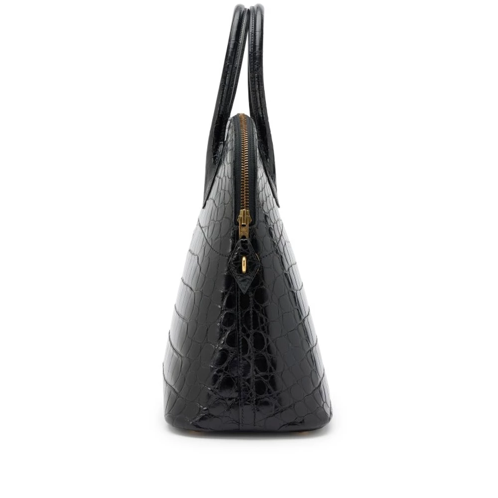 This Hermès Bolide 35 in Black Crocodile Leather is a rare and exquisite vintage handbag from the 1970s. The glossy crocodile leather adds a touch of ultimate luxury, making it a standout investment piece. Gold hardware complements its deep black tone, creating a refined contrast. Spacious and timeless, this is an heirloom-worthy Hermès classic.