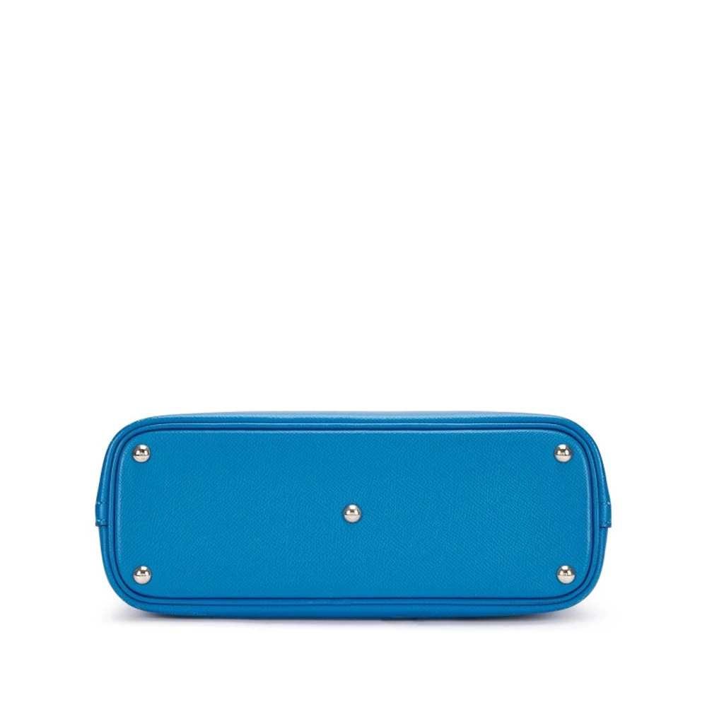 This Hermès Bolide 27 in Bleu Mykonos Epsom Leather is a striking and vibrant handbag in a rich blue hue. The structured Epsom leather ensures a polished and sophisticated silhouette, perfect for a statement look. Palladium hardware adds a sleek contrast, keeping the design fresh. A bold and stylish choice.