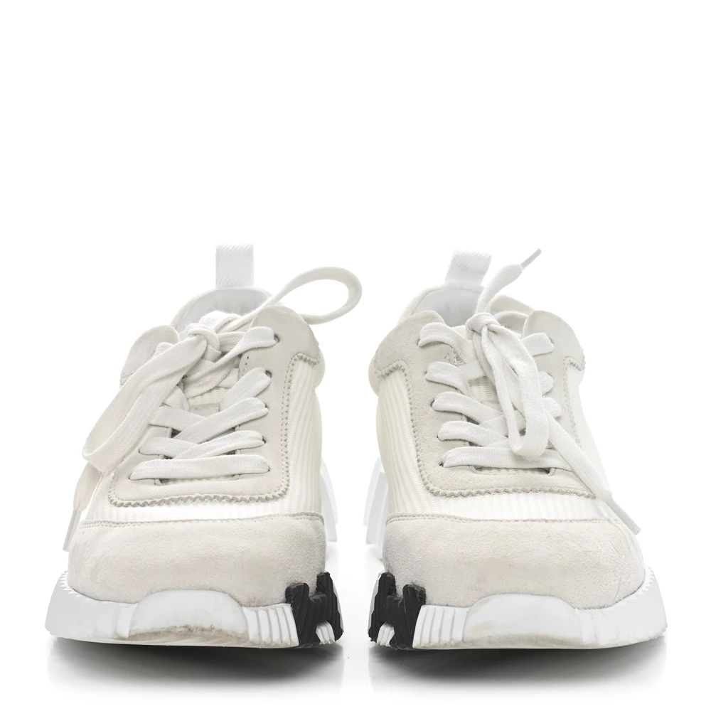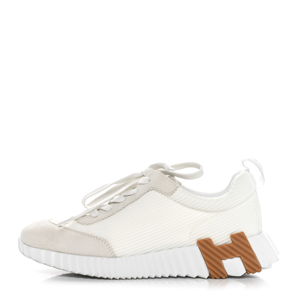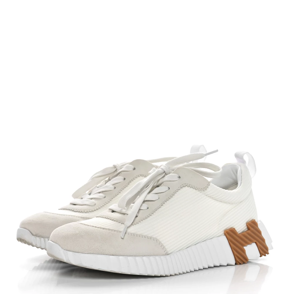 This Hermès Bouncing sneaker in white technical mesh and Suede & Goatskin is a perfect fusion of sport and luxury. The breathable mesh upper is complemented by soft suede detailing, adding depth to the design. Featuring a cushioned sole for superior comfort, it ensures all-day ease. Whether paired with athleisure or casual outfits, this sneaker offers a modern and stylish appeal.