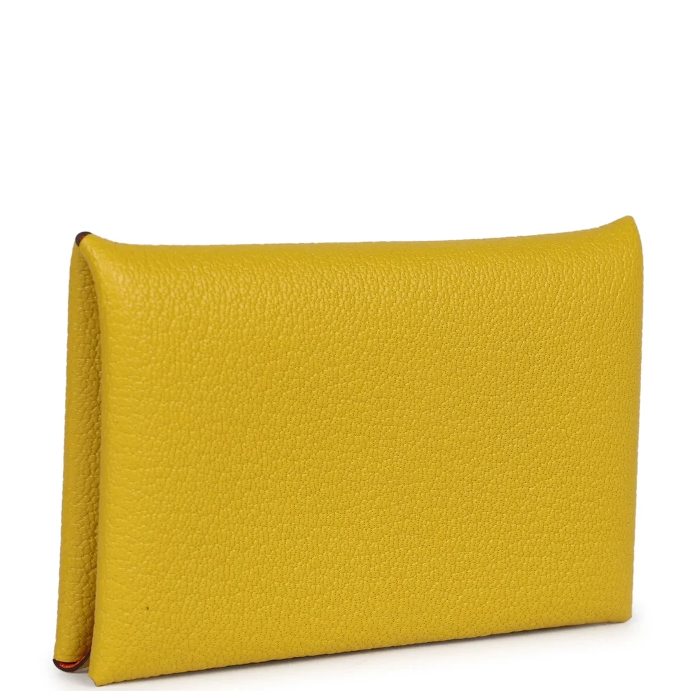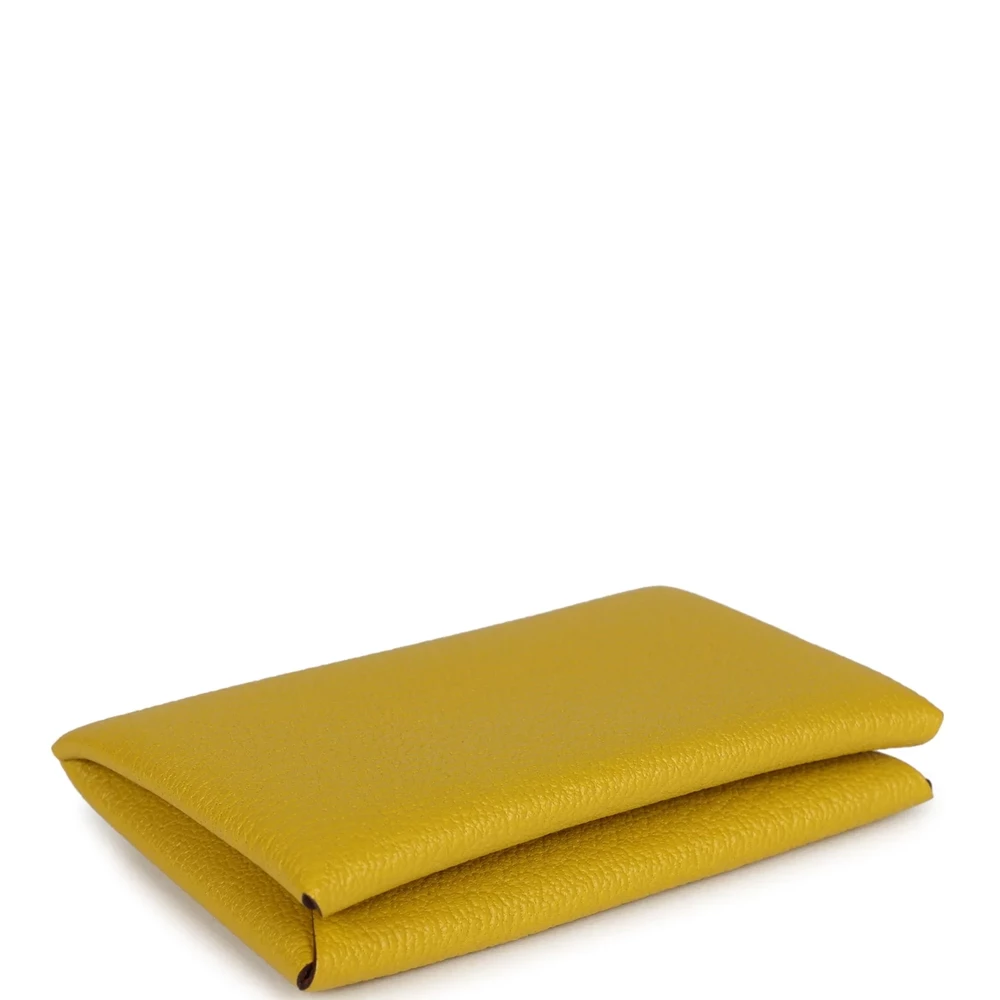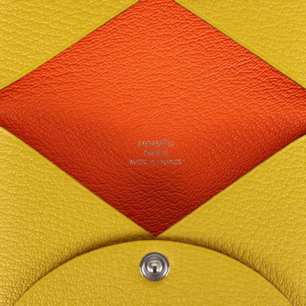 This Hermès Calvi Cardholder Verso in Cumin and Orange Minium is a striking blend of color and craftsmanship. Crafted from Chèvre Mysore leather, its fine grain and smooth texture enhance the rich cumin and vibrant orange hues. The envelope-style design ensures sleek practicality, offering a compact yet functional space for cards and small essentials. Elegant and understated, this cardholder is a refined everyday companion.