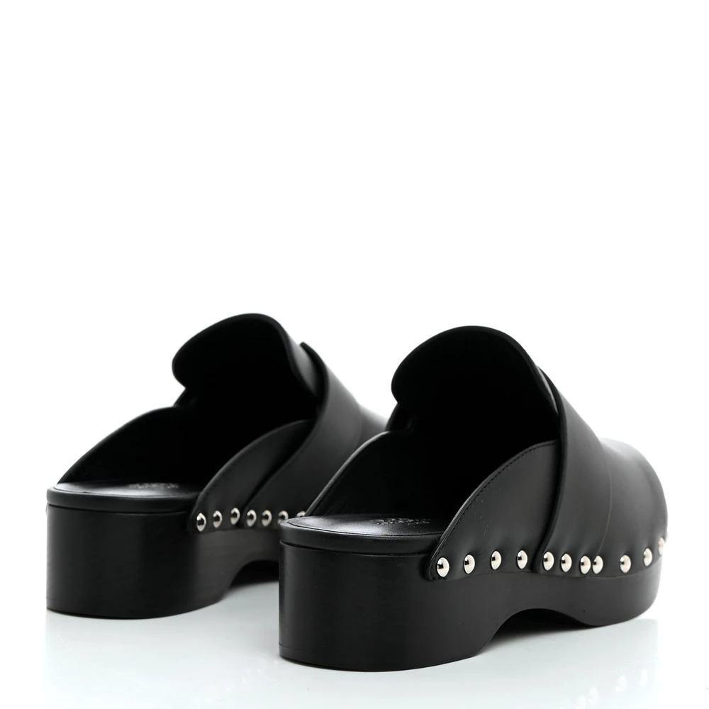 This Hermès Calya mule in Black calfskin is a sleek and refined footwear choice. The smooth leather enhances its minimalist appeal, while the structured design ensures a polished look. Designed for easy slip-on wear, it offers both comfort and sophistication. Whether styled with monochrome outfits or bold prints, this mule is a versatile addition to any wardrobe.