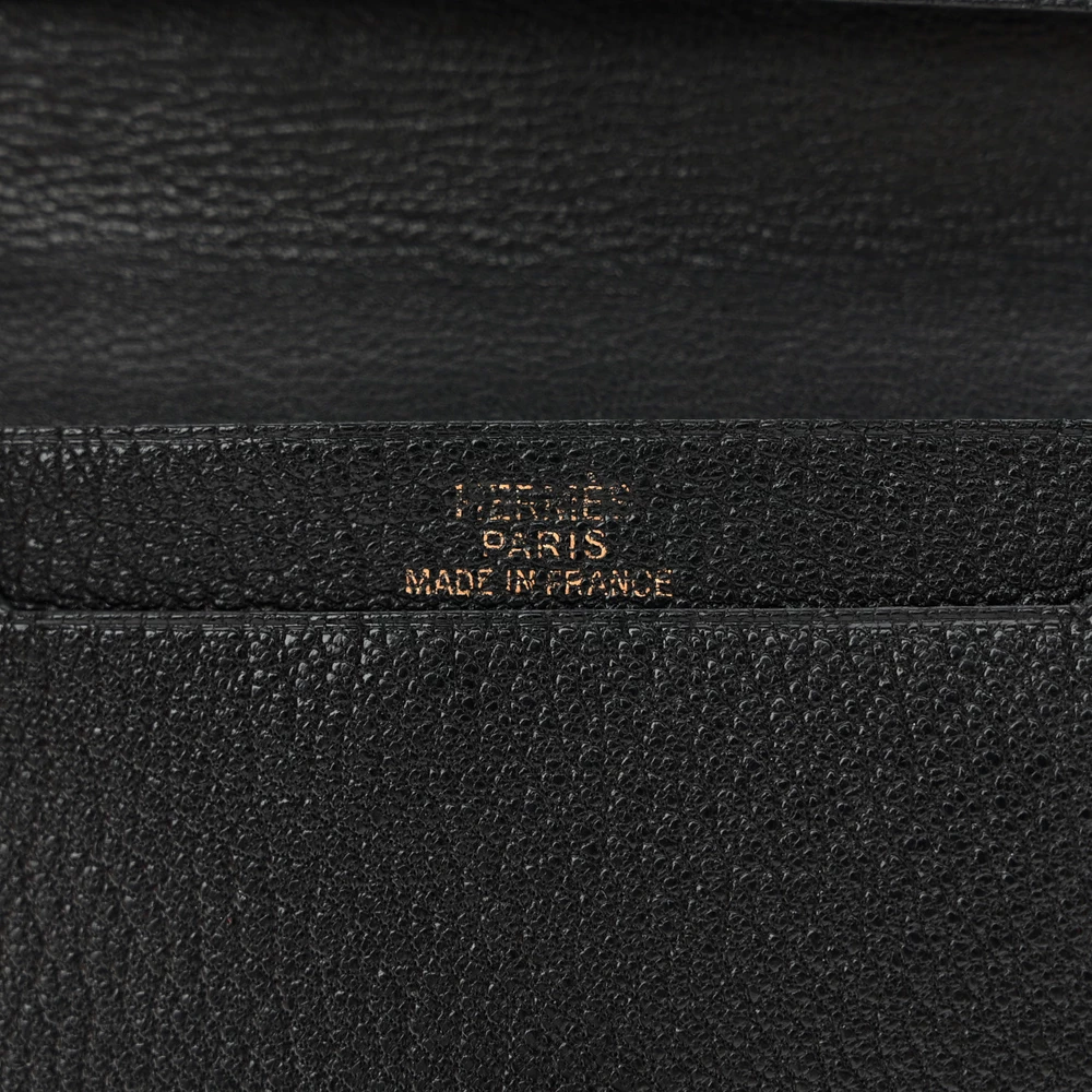 This Hermès Chevre Mysore Bearn Card Holder Wallet in Black is a refined and compact accessory that exudes timeless elegance. Crafted from the finest Chevre Mysore goatskin leather, known for its rich texture and durability, this wallet offers both luxury and functionality. The sleek black hue is complemented by a signature gold-plated Hermes “H” on the front flap, adding a touch of sophistication. The wallet opens to reveal a matching leather interior, featuring card slots to keep your essentials organized. Perfectly sized for everyday use, this chic card holder is an essential piece for those who appreciate understated luxury.