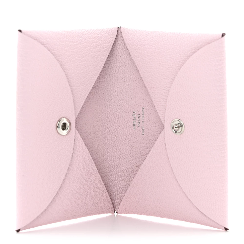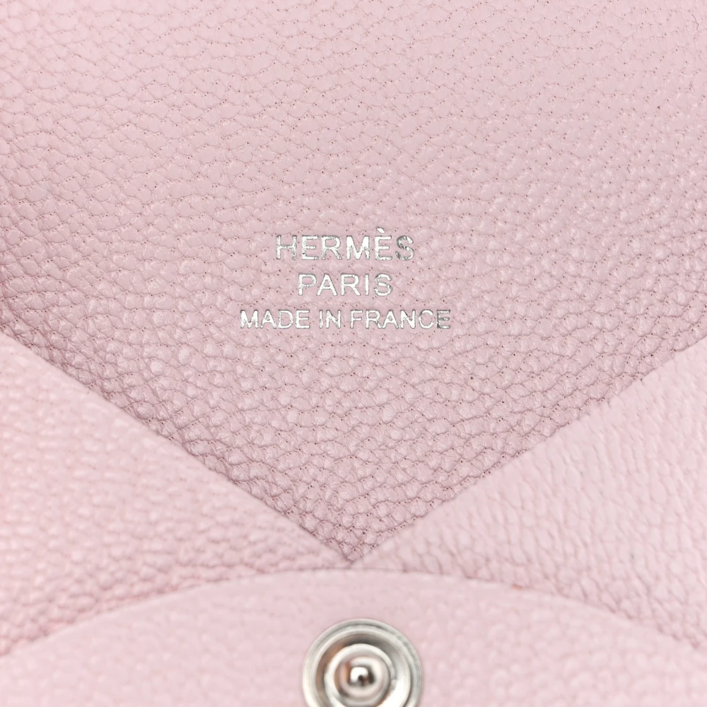 This Hermès Calvi Card Case in Rose Darling is a chic and compact essential for the modern minimalist. Crafted from Chèvre Mysore leather, its smooth yet durable texture is designed to age beautifully. The sleek envelope-style silhouette secures with a simple snap closure, offering effortless organization in an ultra-slim profile. Perfect for carrying cards with elegance, this refined piece embodies Hermès’ commitment to craftsmanship and timeless design.