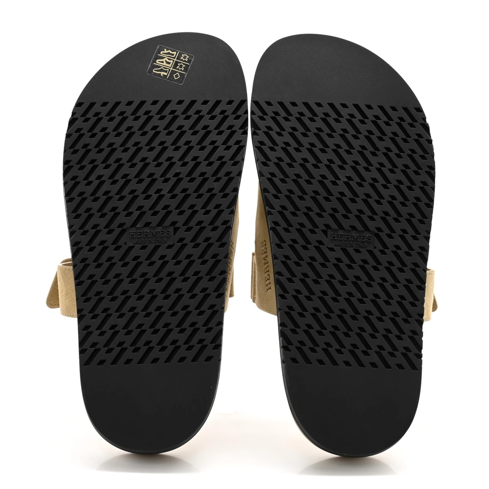 This Hermès Chypre sandal in Beige Lin Suede & Goatskin is a refined and comfortable footwear choice. The soft suede material enhances its luxurious appeal, while the neutral beige tone allows for versatile styling. Designed with an ergonomic sole for optimal support, it ensures all-day ease. Whether paired with casual outfits or elevated loungewear, this sandal embodies effortless sophistication.