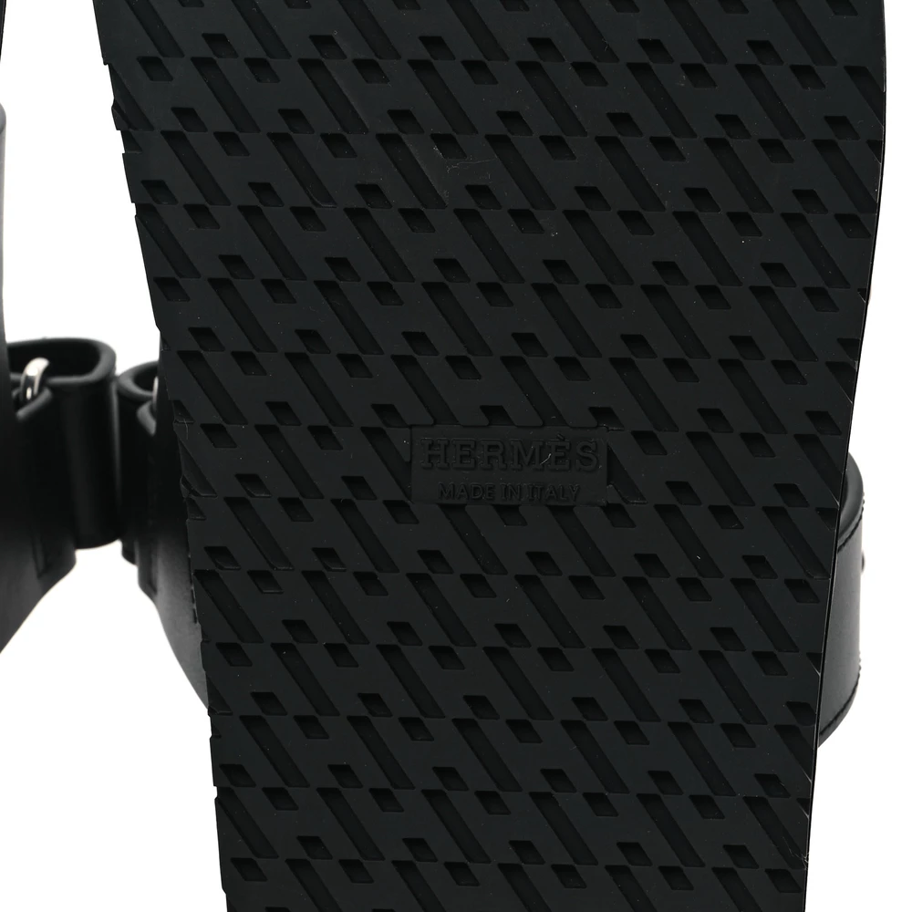 This Hermès Chypre sandal in Black calfskin is a sleek and minimalistic footwear staple. The smooth leather enhances its timeless appeal, while the contoured footbed ensures maximum comfort. Designed with an adjustable strap for a secure fit, it offers both practicality and style. Whether worn with casual looks or elevated ensembles, this sandal remains a versatile essential.