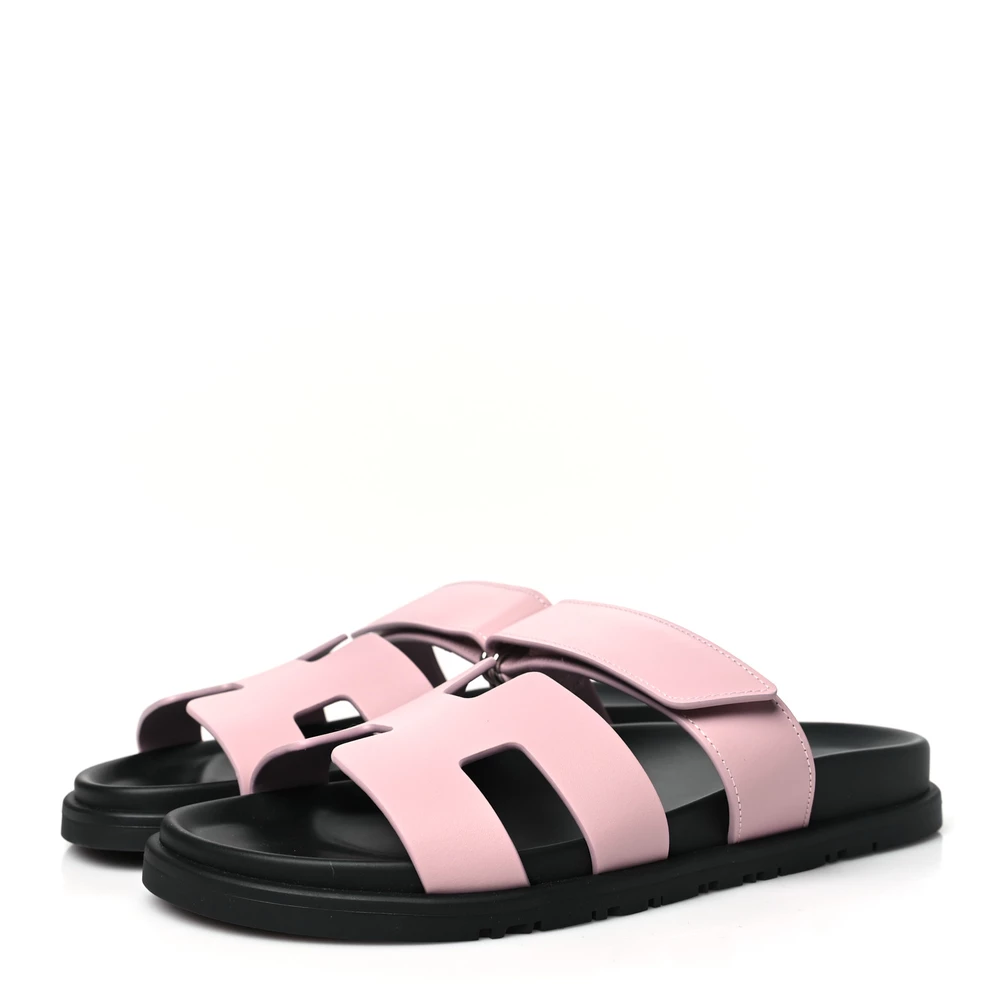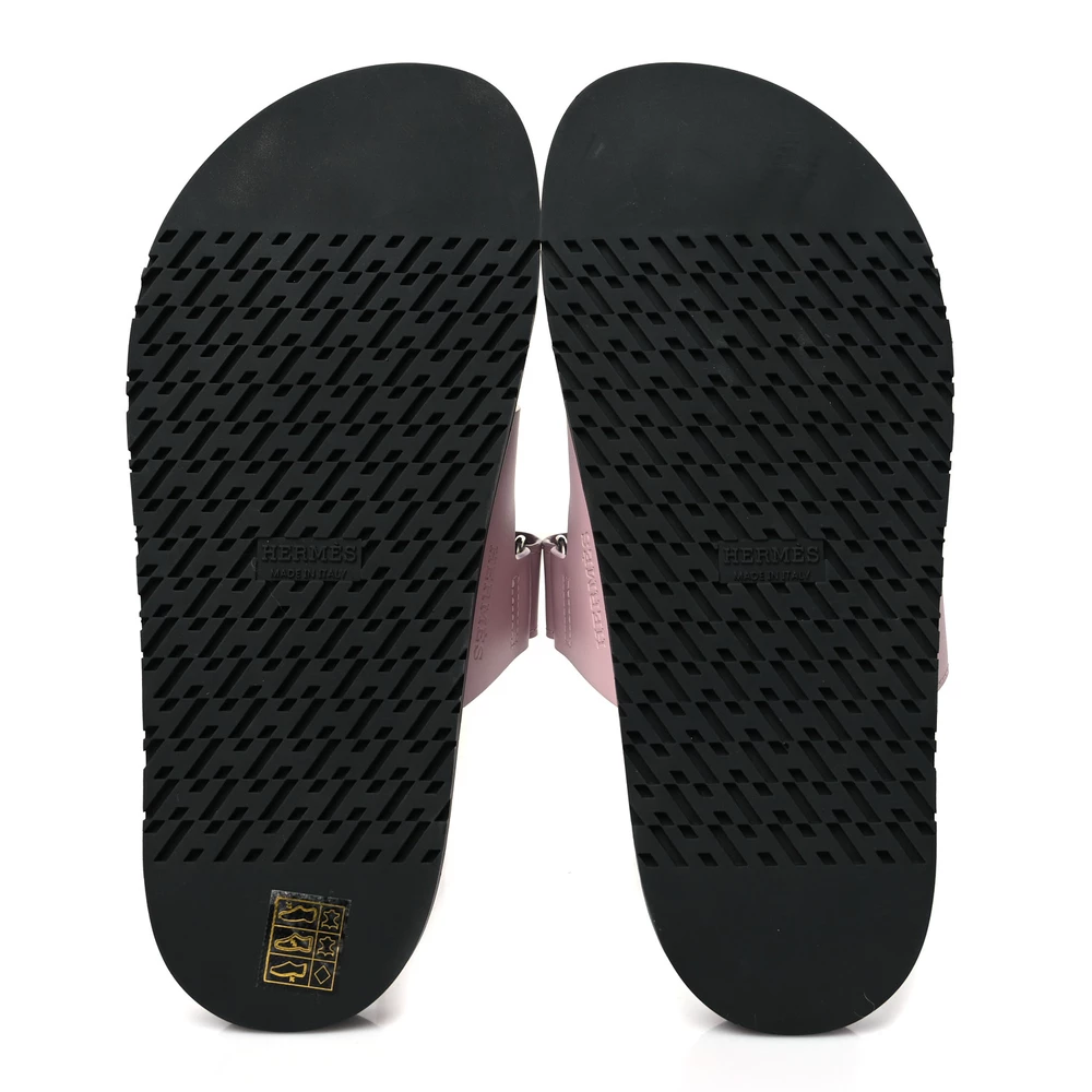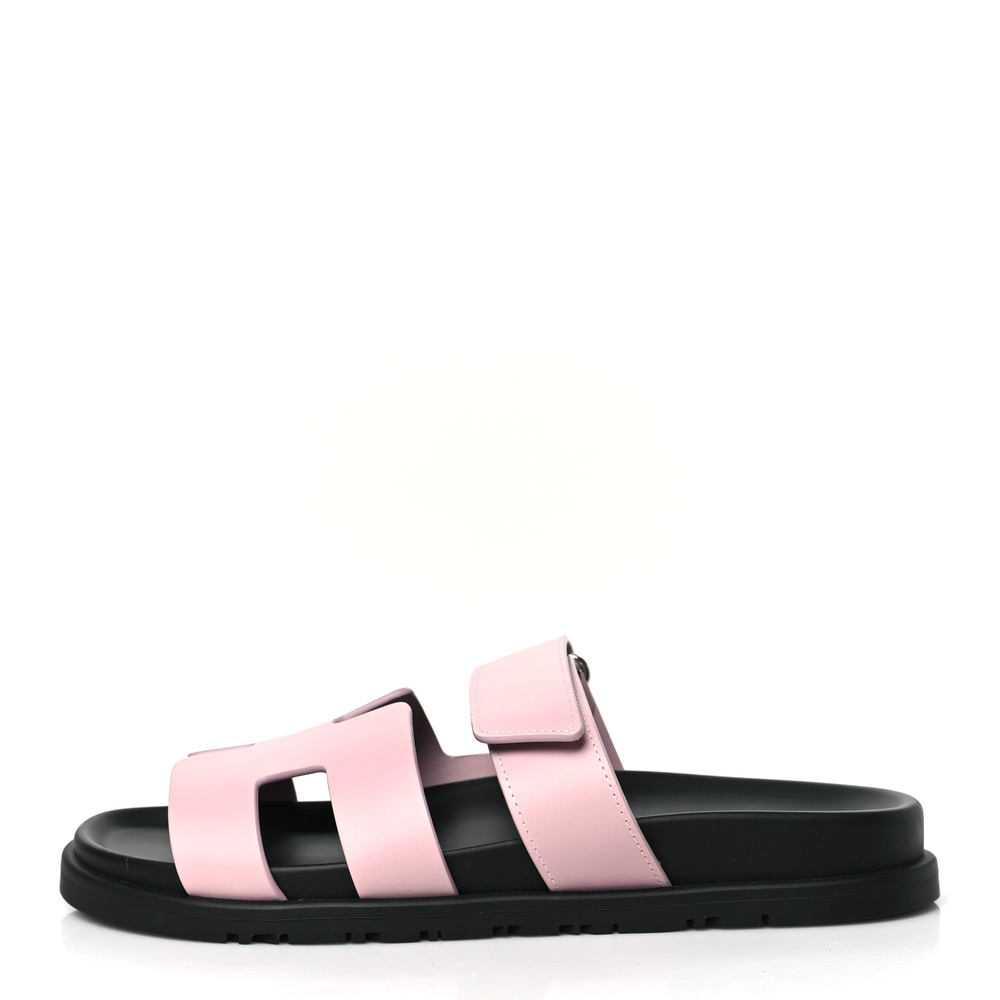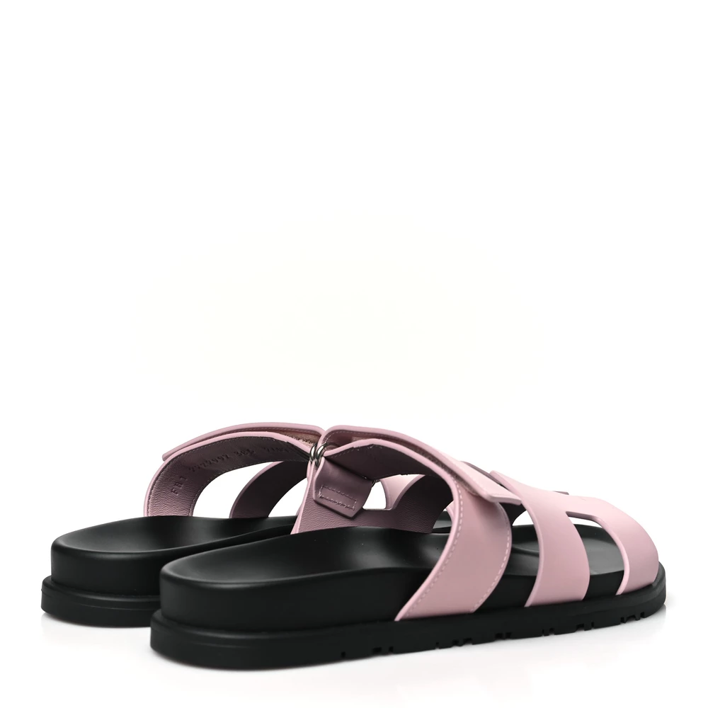 This Hermès Chypre sandal in Rose Cancan calfskin is a playful and feminine take on a classic style. The soft pink hue enhances its delicate charm, while the smooth leather ensures a refined finish. Designed with an ergonomic footbed for support, it offers both style and comfort. Whether worn with monochrome looks or pastel tones, this sandal adds a fresh and modern touch.