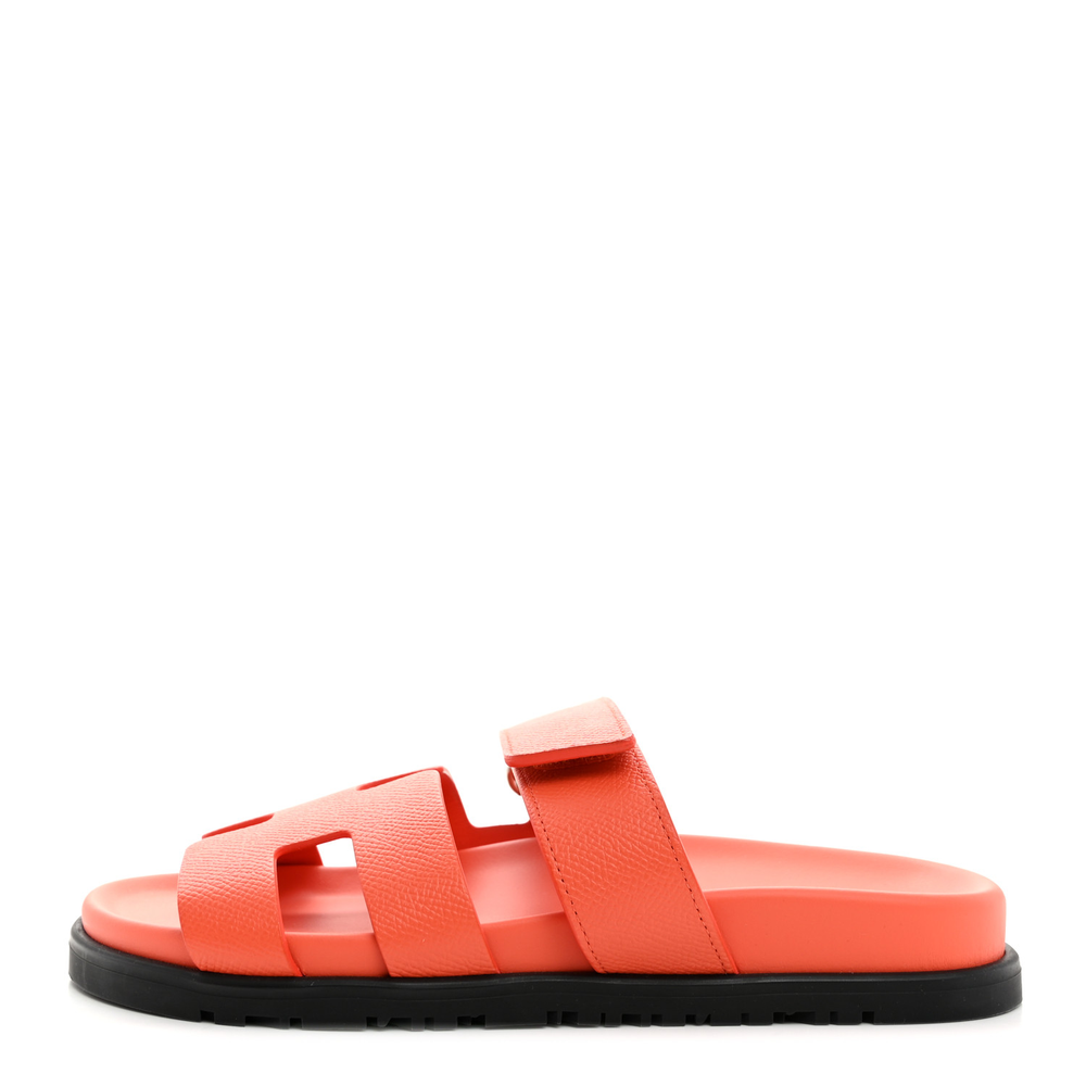 This Hermès Chypre sandal in Rose Sorbet Epsom leather is a fresh and feminine take on luxury footwear. The structured Epsom leather provides durability, while the soft pink hue adds a playful charm. Designed with an ergonomic sole and an adjustable strap, it ensures all-day comfort. Whether worn with relaxed summer outfits or chic casualwear, this sandal is a must-have for effortless elegance.