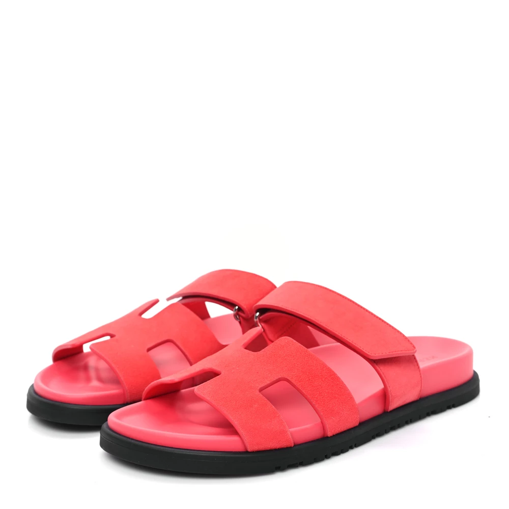 This Hermès Chypre sandal in Rose Vermillon Suede & Goatskin is a vibrant take on a classic design. The rich pink-red hue adds a bold touch, while the plush suede enhances its luxurious feel. Featuring an ergonomic sole and adjustable strap, it ensures both comfort and style. Whether worn with casual summer looks or relaxed tailoring, this sandal makes an effortlessly chic statement.