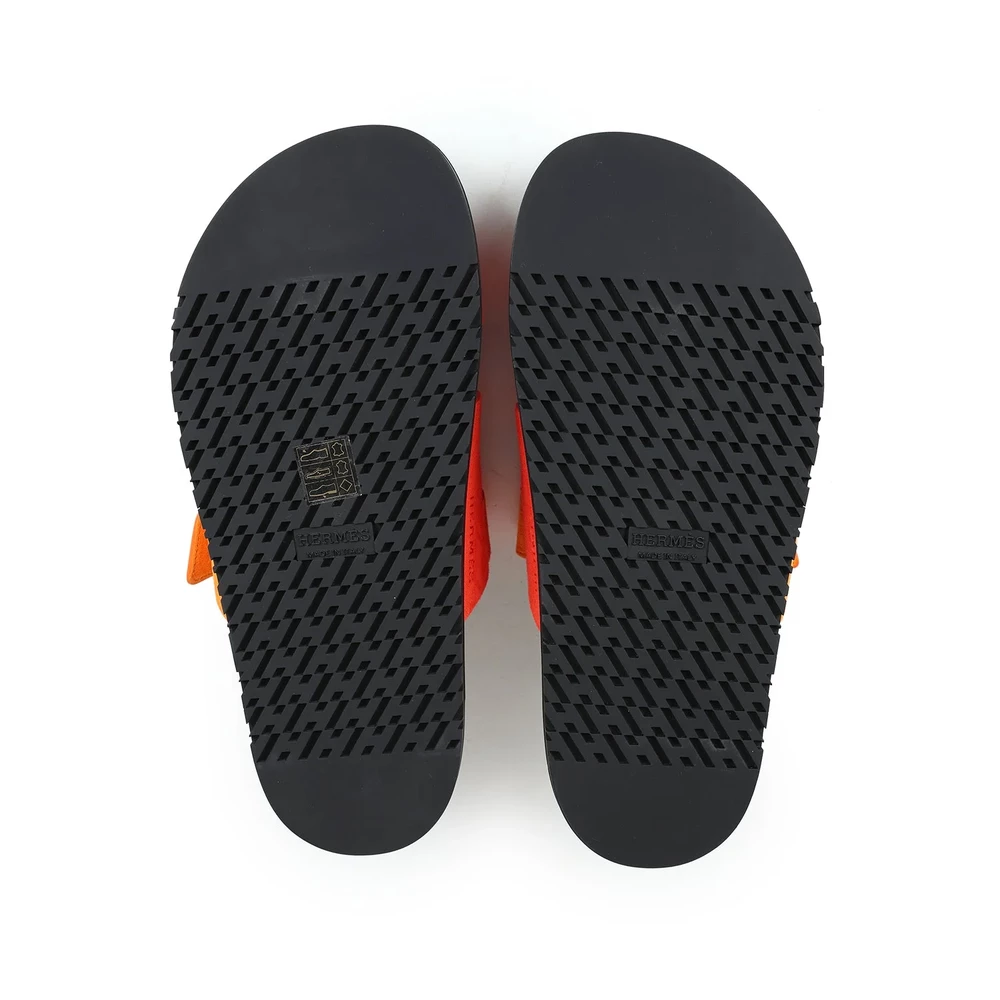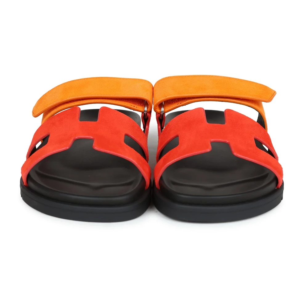 This Hermès Chypre Techno sandal in Sunset Rouge Écarlate suede with palladium hardware is a sophisticated yet sporty option. The rich red suede creates a bold statement, while the palladium hardware adds a sleek metallic contrast. The cushioned sole ensures superior comfort, and the adjustable strap allows for a secure fit. This sandal is a perfect choice for those who want a mix of luxury and everyday practicality.