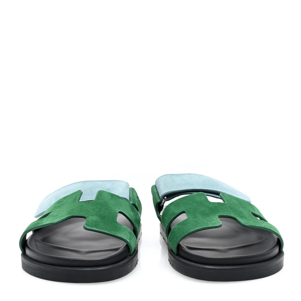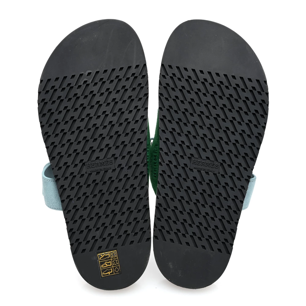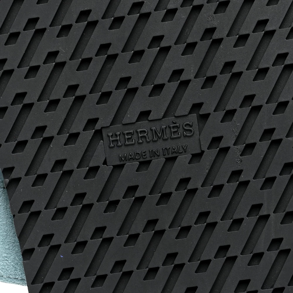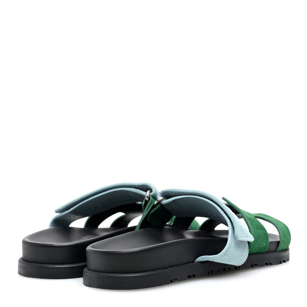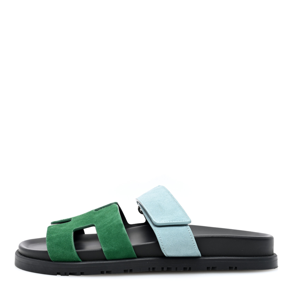 This Hermès Chypre sandal in Vert Cactus Vert d’Eau Suede & Goatskin is a fresh and nature-inspired footwear choice. The soft suede enhances its refined texture, while the dual-tone design adds depth. Designed with a contoured sole for comfort, it offers both style and ease. Whether styled with minimalist or bold outfits, this sandal remains a versatile staple.