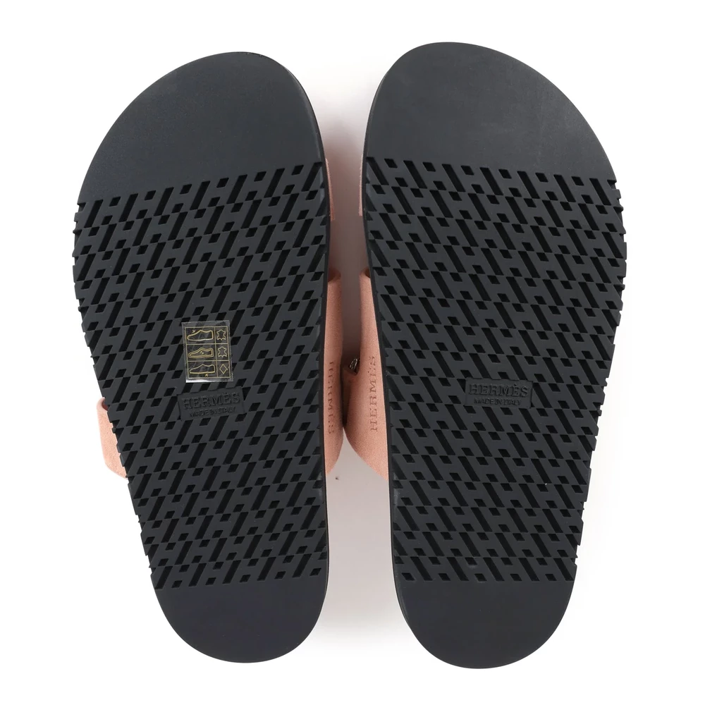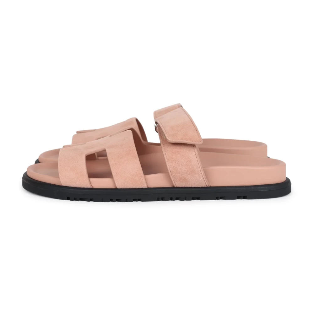 This Hermès Chypre Techno Sandal in nude suede with palladium hardware is a refined yet contemporary option. The soft suede material ensures a plush and sophisticated finish. The cushioned sole adds comfort, making it ideal for all-day wear. The neutral nude shade enhances its versatility, pairing well with a variety of outfits. This sandal is a perfect balance of understated elegance and modern design.