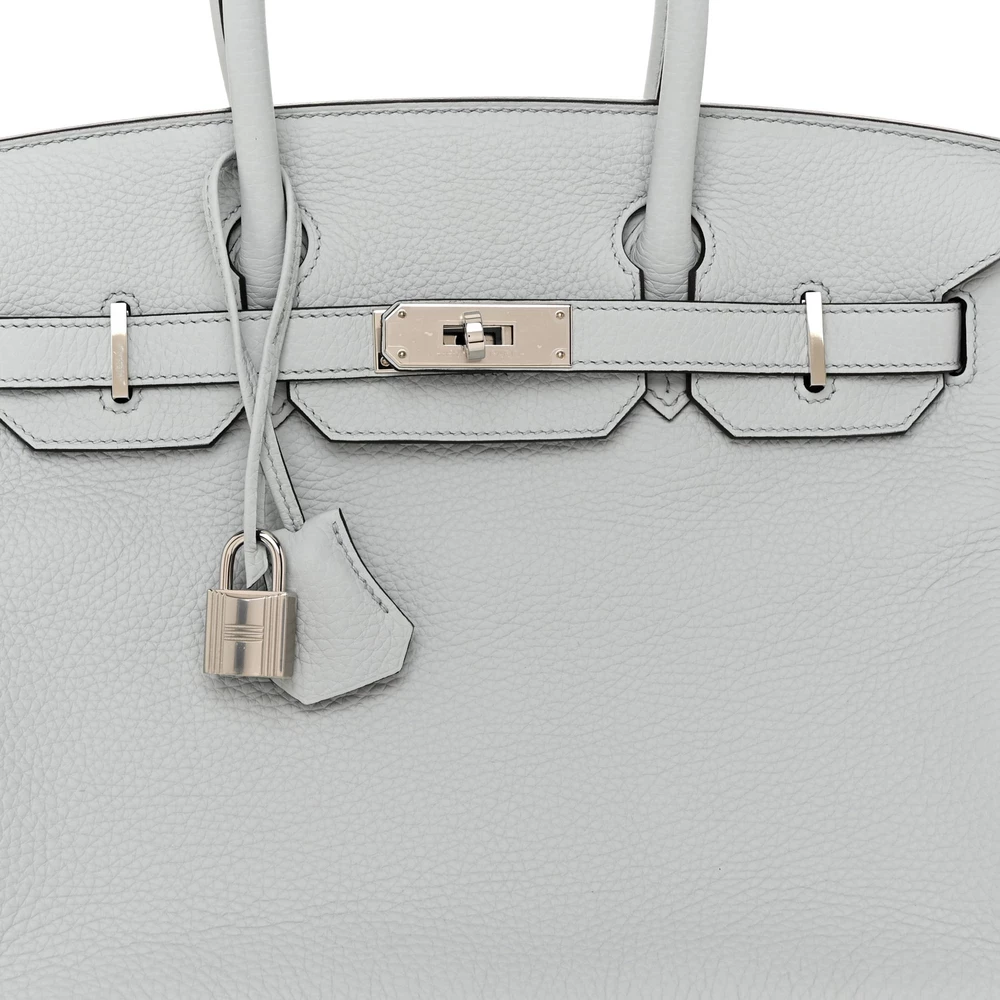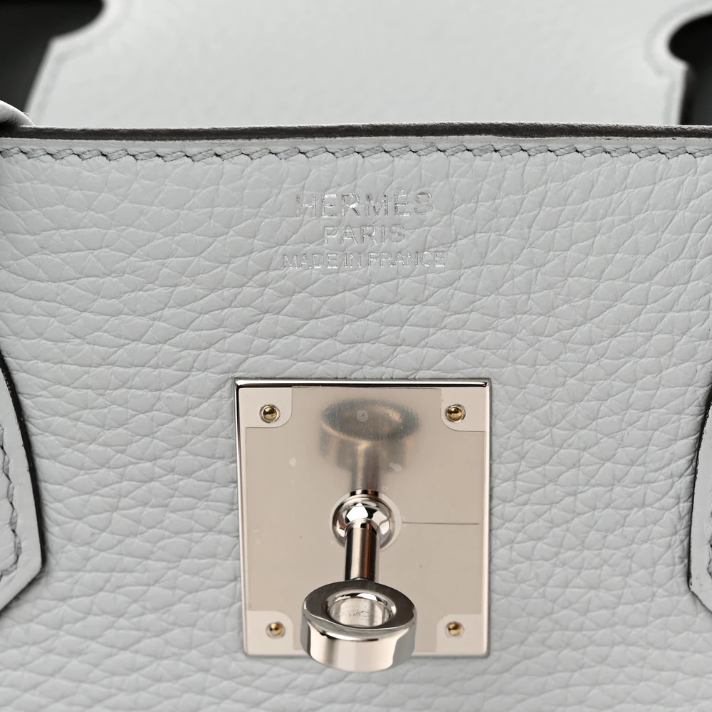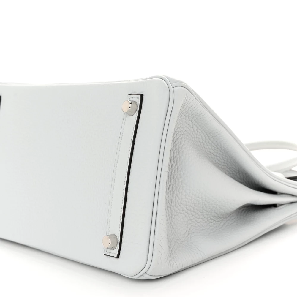 This Hermès Taurillon Clémence Birkin 30 in Bleu Pâle is a dreamy pastel handbag in a delicate powder blue shade. The Taurillon Clémence leather provides a relaxed yet structured feel, making this Birkin both chic and practical. At 30 cm, it is a versatile size that suits various occasions. Palladium hardware adds a crisp contrast to the soft blue hue. This is a refined and graceful addition to any collection.