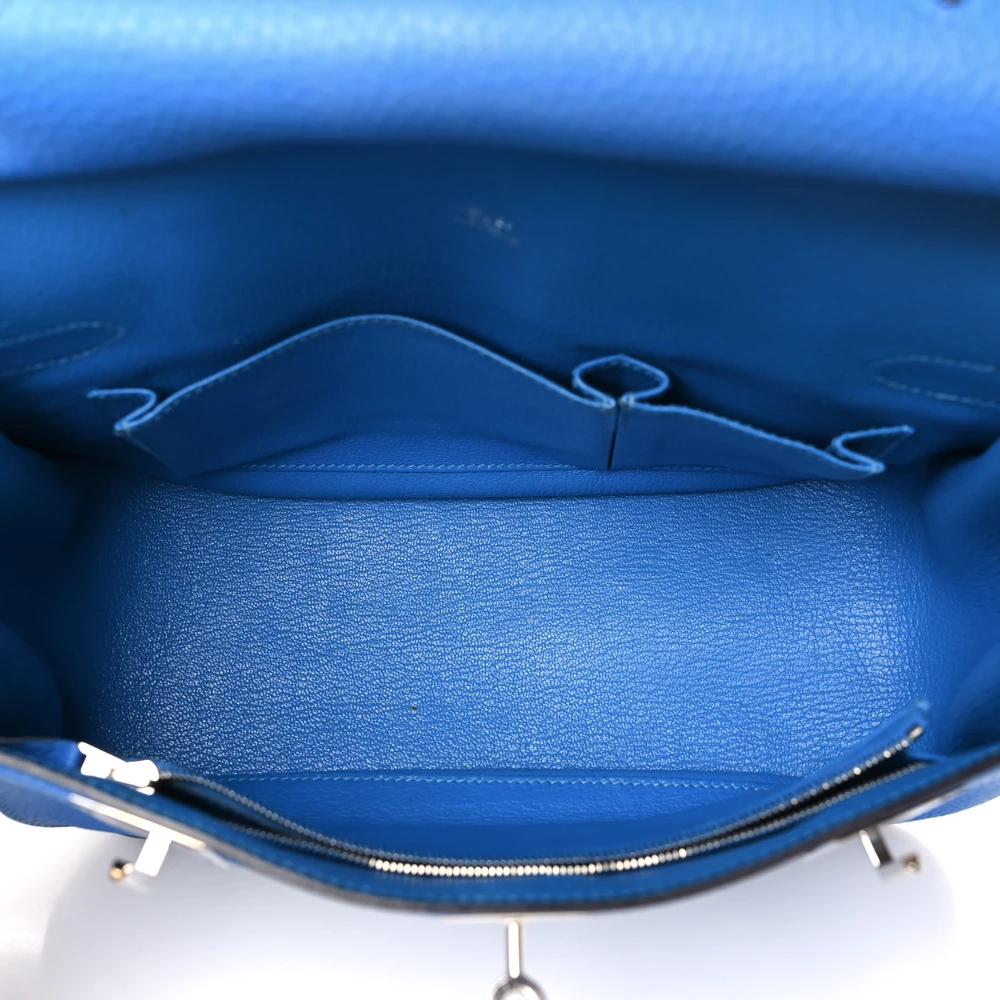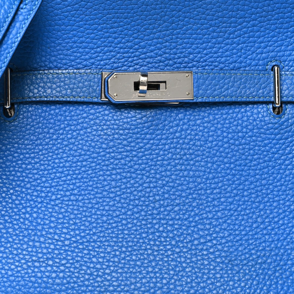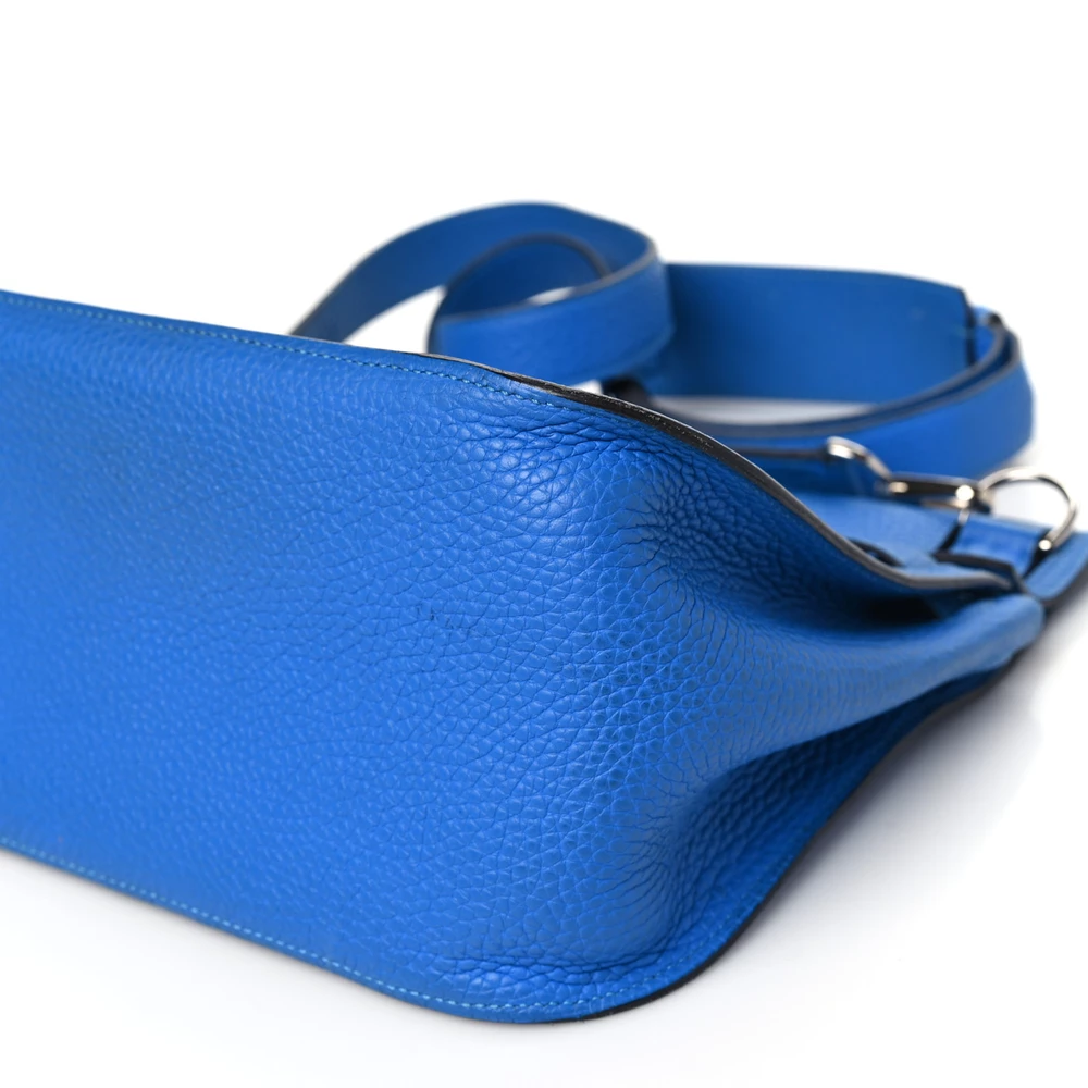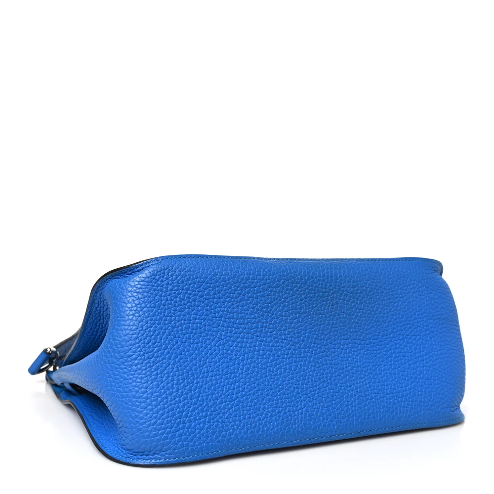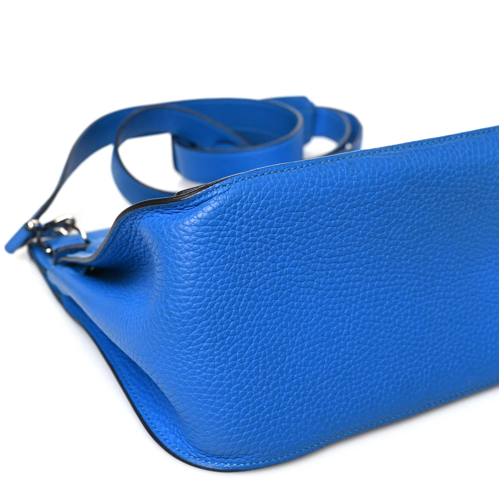 This Hermès Jypsiere 28 in Bleu Hydra Taurillon Clemence Leather is a bold and refined handbag in a deep, electrifying blue hue. The Clemence leather offers a soft and slouchy feel, ensuring both comfort and durability. Its palladium hardware enhances the modern aesthetic, while the adjustable strap allows for a customized fit. A perfect mix of sophistication and practicality.