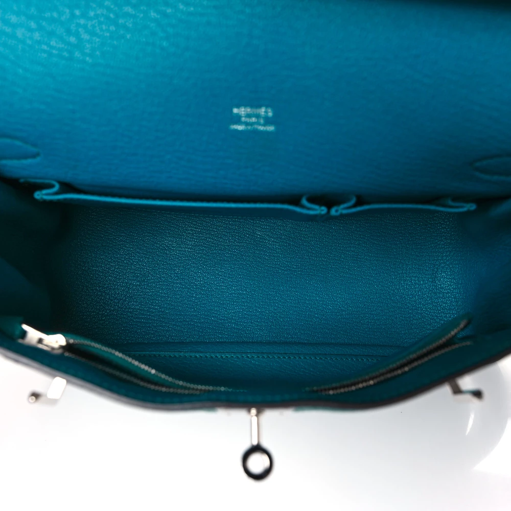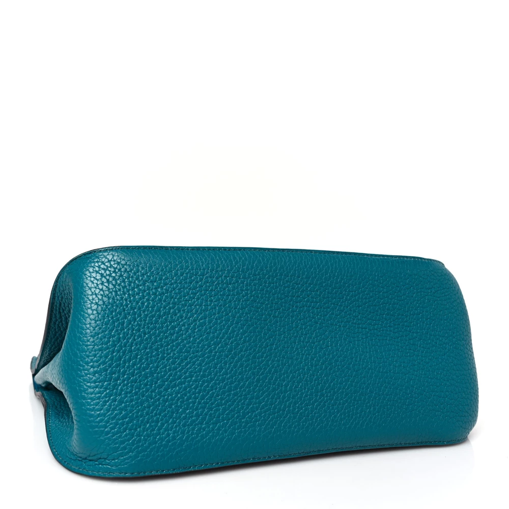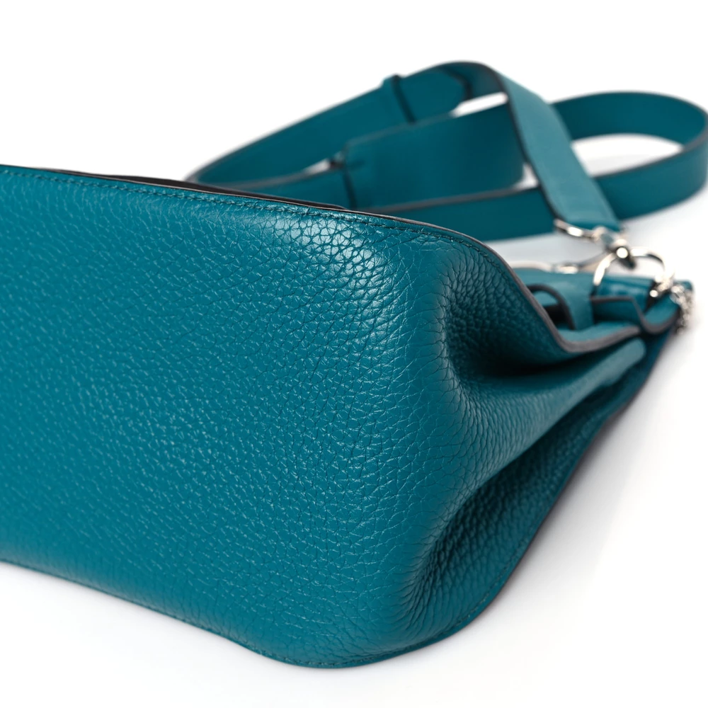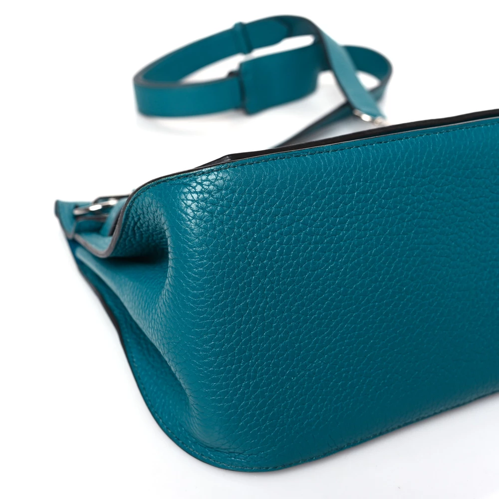 This Hermès Jypsiere 28 in Bleu Izmir Taurillon Clemence Leather is a stunning and vibrant bag in a rich turquoise-blue hue. The Clemence leather ensures a soft yet structured feel, offering both luxury and durability. Its palladium hardware contrasts beautifully against the striking color, while the adjustable strap allows for versatile wear. A perfect blend of elegance and practicality.