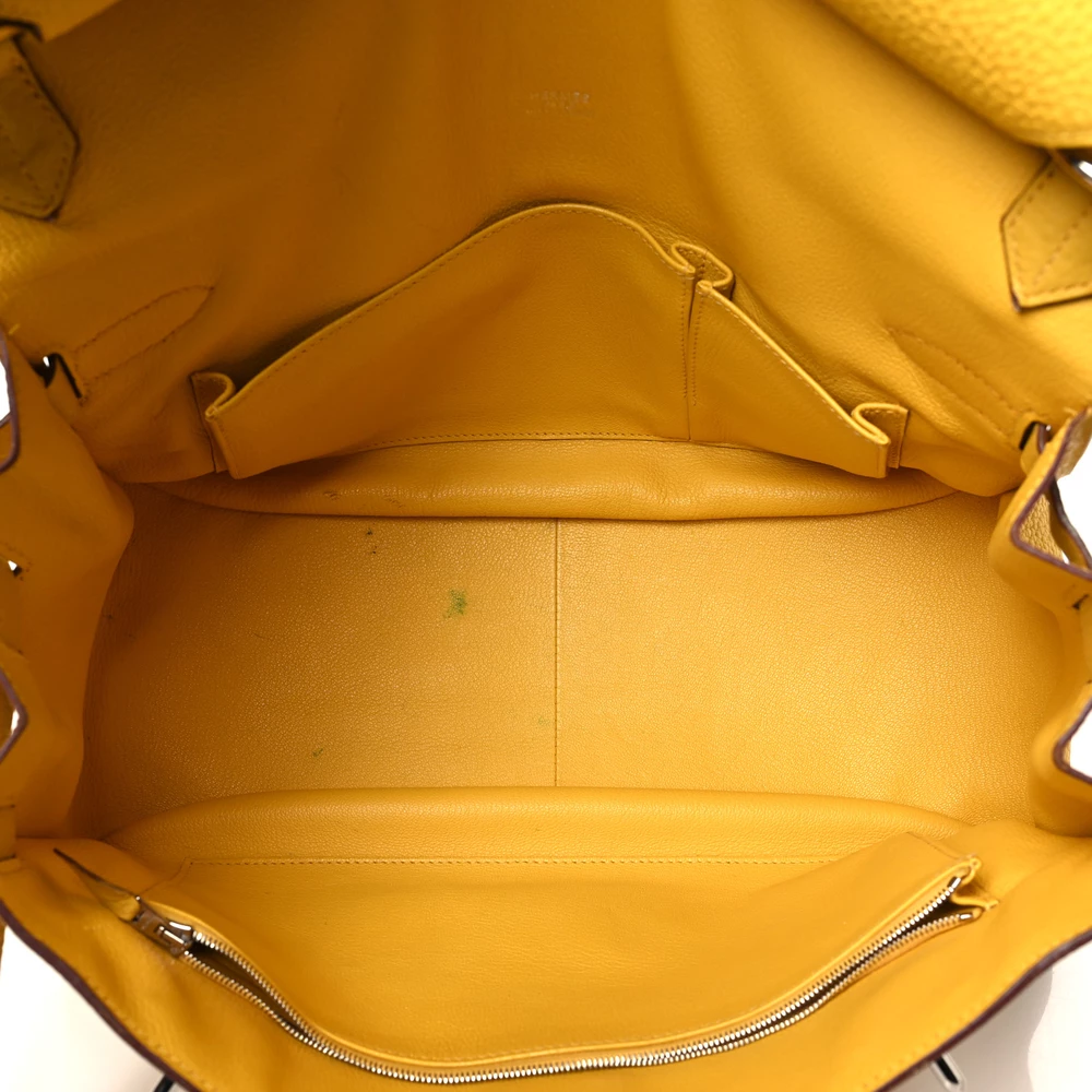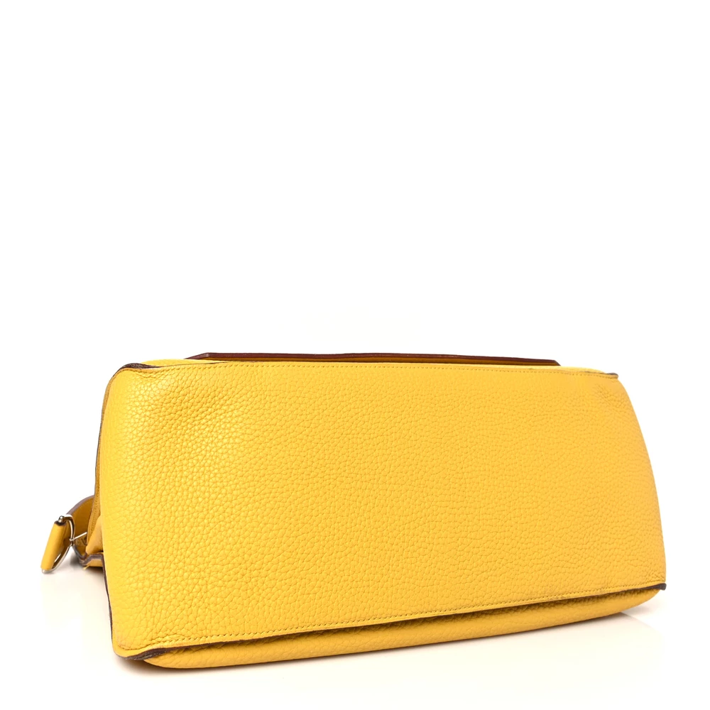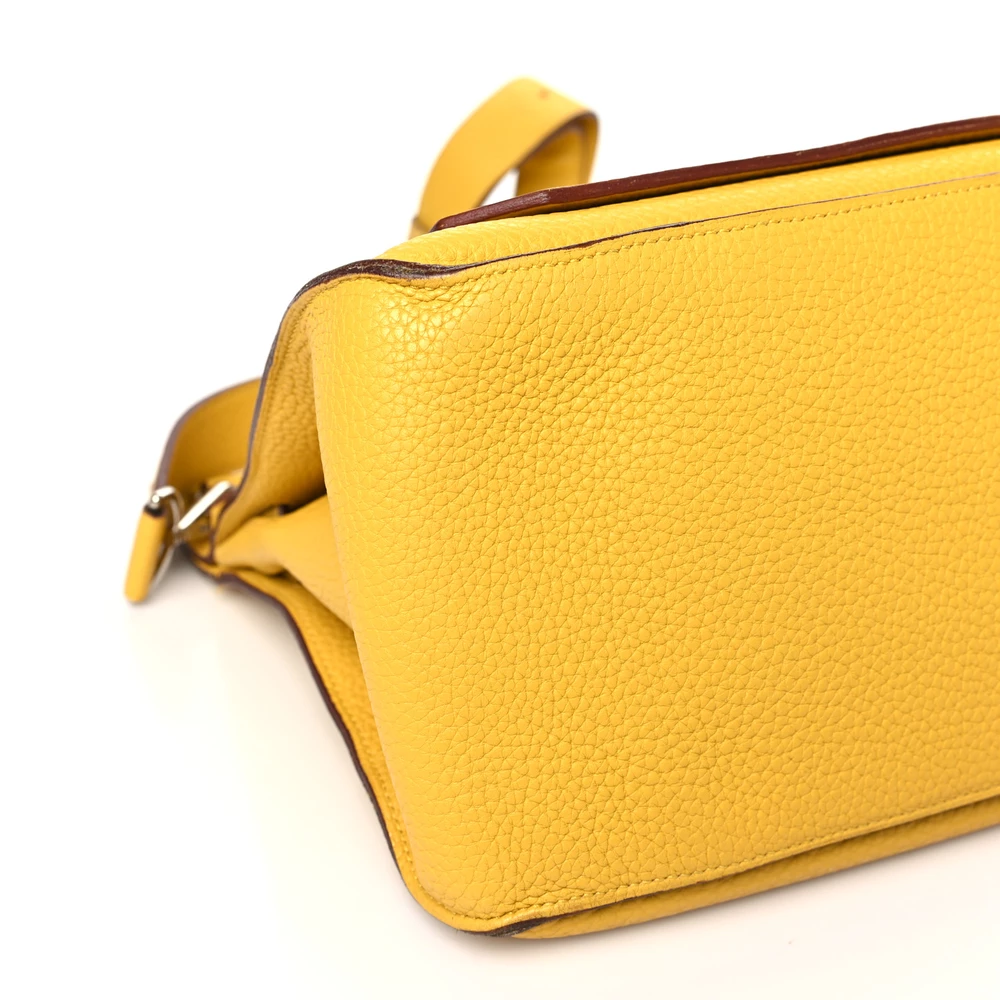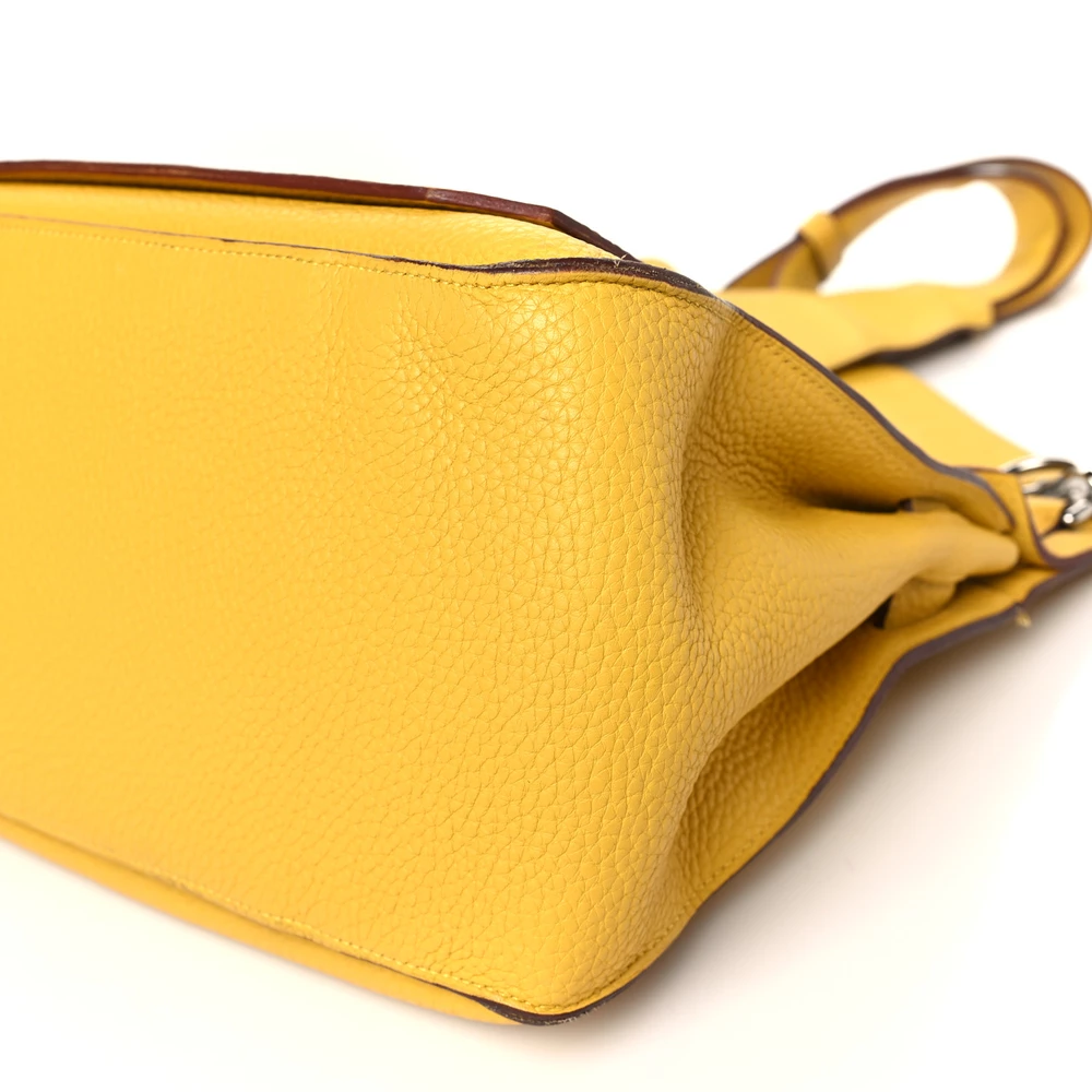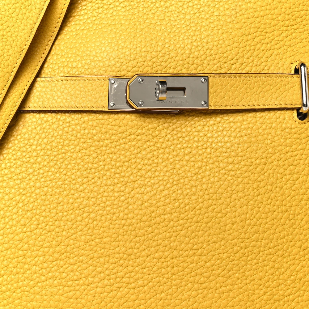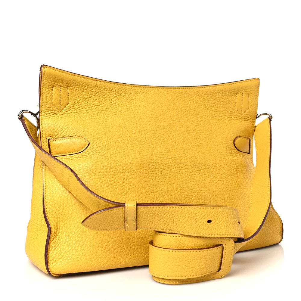 This Hermès Jypsiere 34 in Jaune Ambre Taurillon Clemence Leather is a spacious and radiant crossbody bag in a warm amber-yellow shade. The Clemence leather ensures a supple texture and relaxed silhouette, making it both stylish and functional. Palladium hardware adds a sleek contrast, and the adjustable strap provides versatility for everyday use.