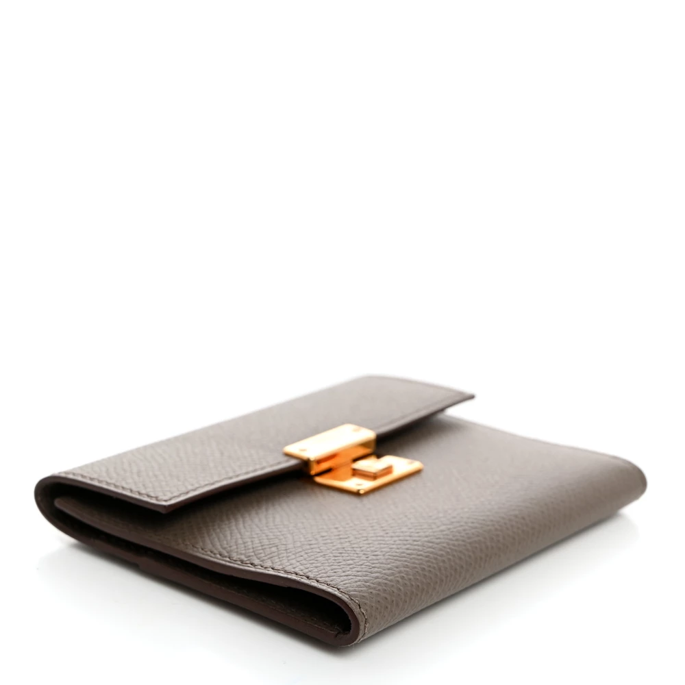 This Hermès Epsom Clic 12 Wallet in Etoupe is a compact and stylish everyday essential. The neutral Etoupe shade pairs beautifully with the structured Epsom leather, ensuring durability and a polished look. Featuring a snap closure, it offers both security and ease of use. A sleek and practical piece with timeless appeal.