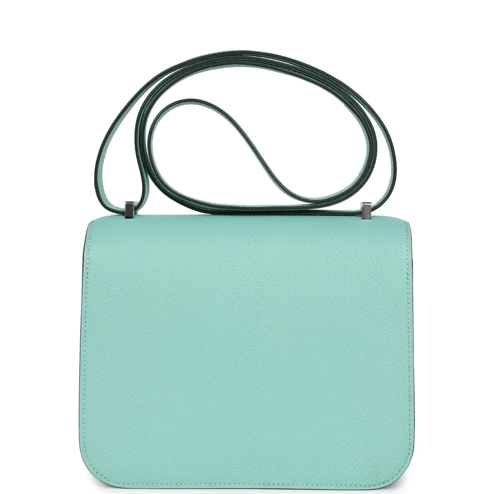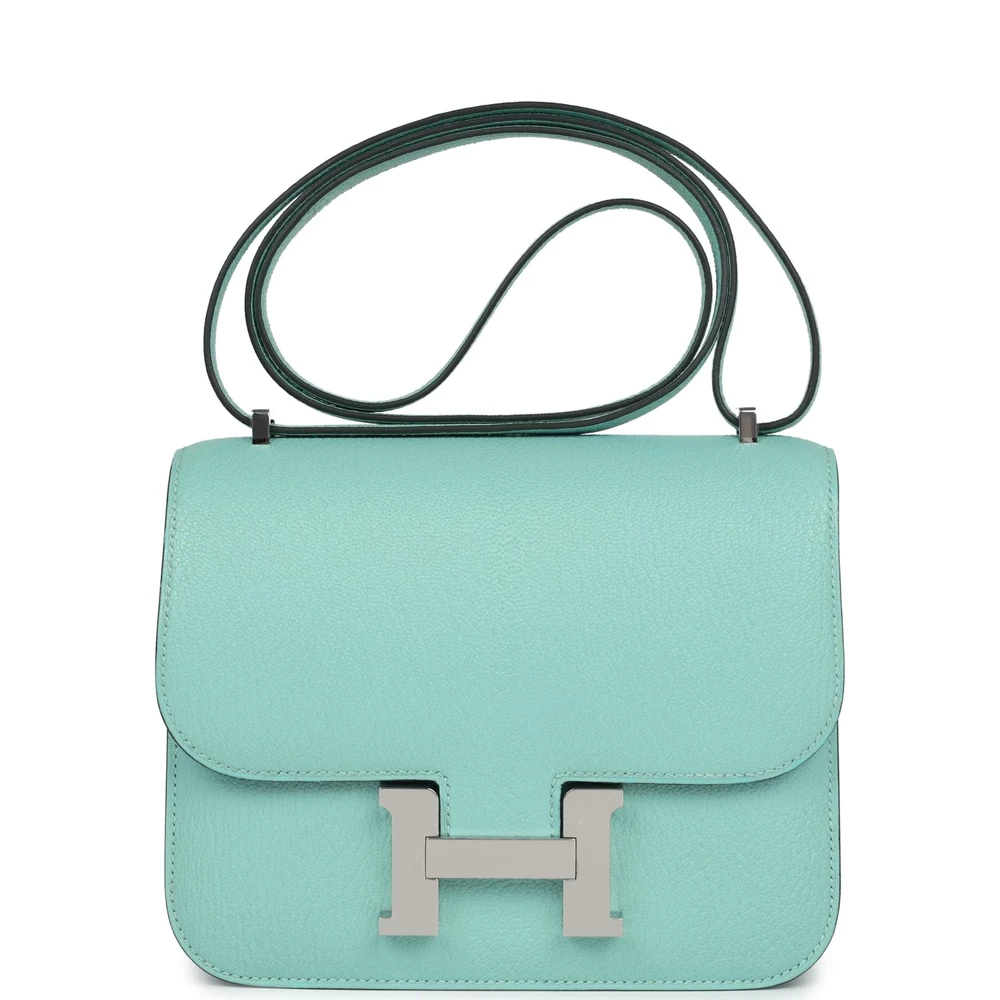 This Hermès Constance 18 in Aqua Chevre is a refreshing splash of luxury. The vibrant aqua blue shade is youthful and energetic. Palladium hardware adds a sleek, modern contrast to its smooth leather. Compact yet structured, making it a perfect everyday statement piece. A rare find for those who love bold and playful elegance. Elevate your wardrobe with this striking and sophisticated Constance.