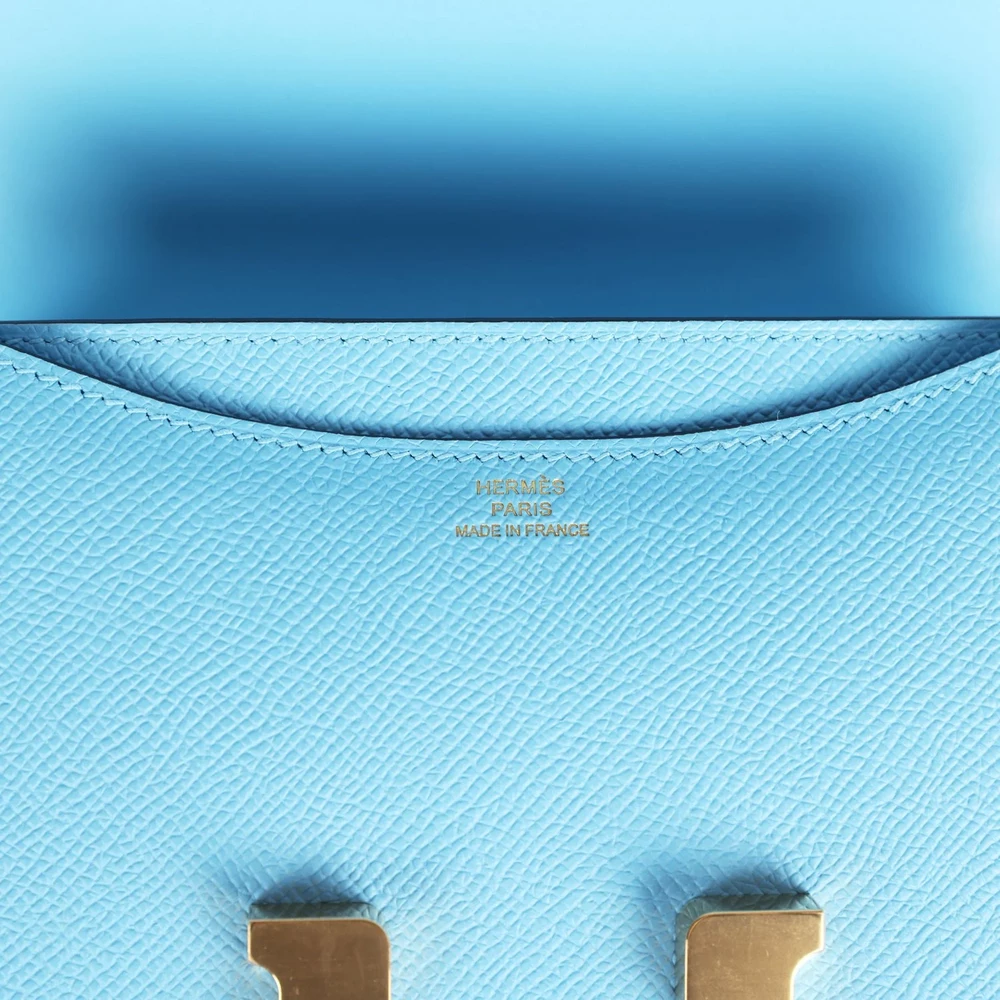 This Hermès Constance 18 in Celeste Epsom is a celestial beauty in a dreamlike shade of blue. The fine-grained Epsom leather enhances its structured silhouette. Gold hardware brings a touch of warmth and elegance to this cool-toned masterpiece. Compact yet statement-worthy, ideal for both daytime chic and evening glamour. A standout choice for those who love soft yet striking colors. Elevate your collection with this radiant and dreamy Constance.