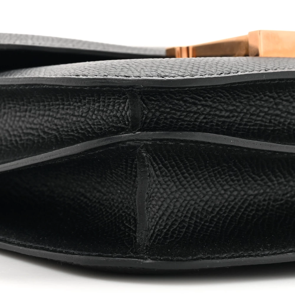 This Hermès Epsom Constance 18 Black is a compact and structured handbag in a classic black shade. The Epsom leather provides a scratch-resistant and polished finish, ensuring lasting durability. The signature H clasp adds a timeless and sophisticated touch. Gold hardware enhances its elegant and luxurious aesthetic. This Constance is a must-have for effortless chic styling.