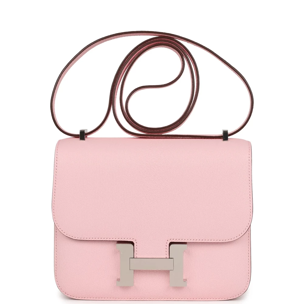 This Hermès Constance 18 in Rose Sakura Chevre is a delicate beauty in soft pink. The fine-grained leather enhances its refined and feminine appeal. Palladium hardware adds a cool contrast, making it effortlessly modern. Compact yet structured, it’s ideal for both casual and evening looks. A must-have for those who appreciate timeless elegance with a playful touch. Elevate your wardrobe with this charming and graceful Constance.