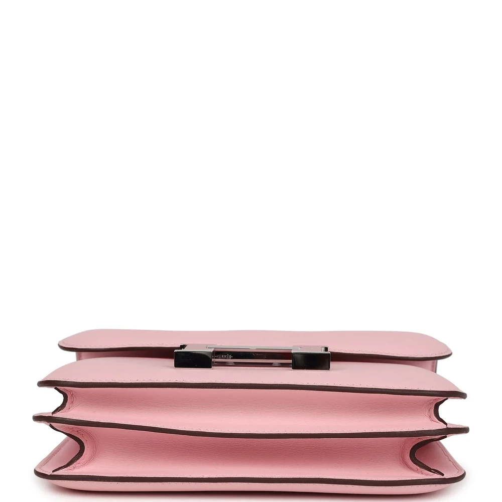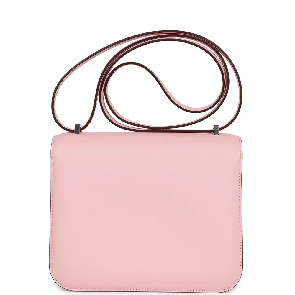 This Hermès Constance 18 in Rose Sakura Swift leather is a vision of soft luxury. The smooth Swift leather enhances the pastel pink hue with a refined finish. Palladium hardware brings a contemporary edge to its delicate design. Compact and stylish, making it a versatile day-to-night piece. A perfect choice for lovers of subtle yet striking elegance. Elevate your collection with this beautifully feminine Constance.